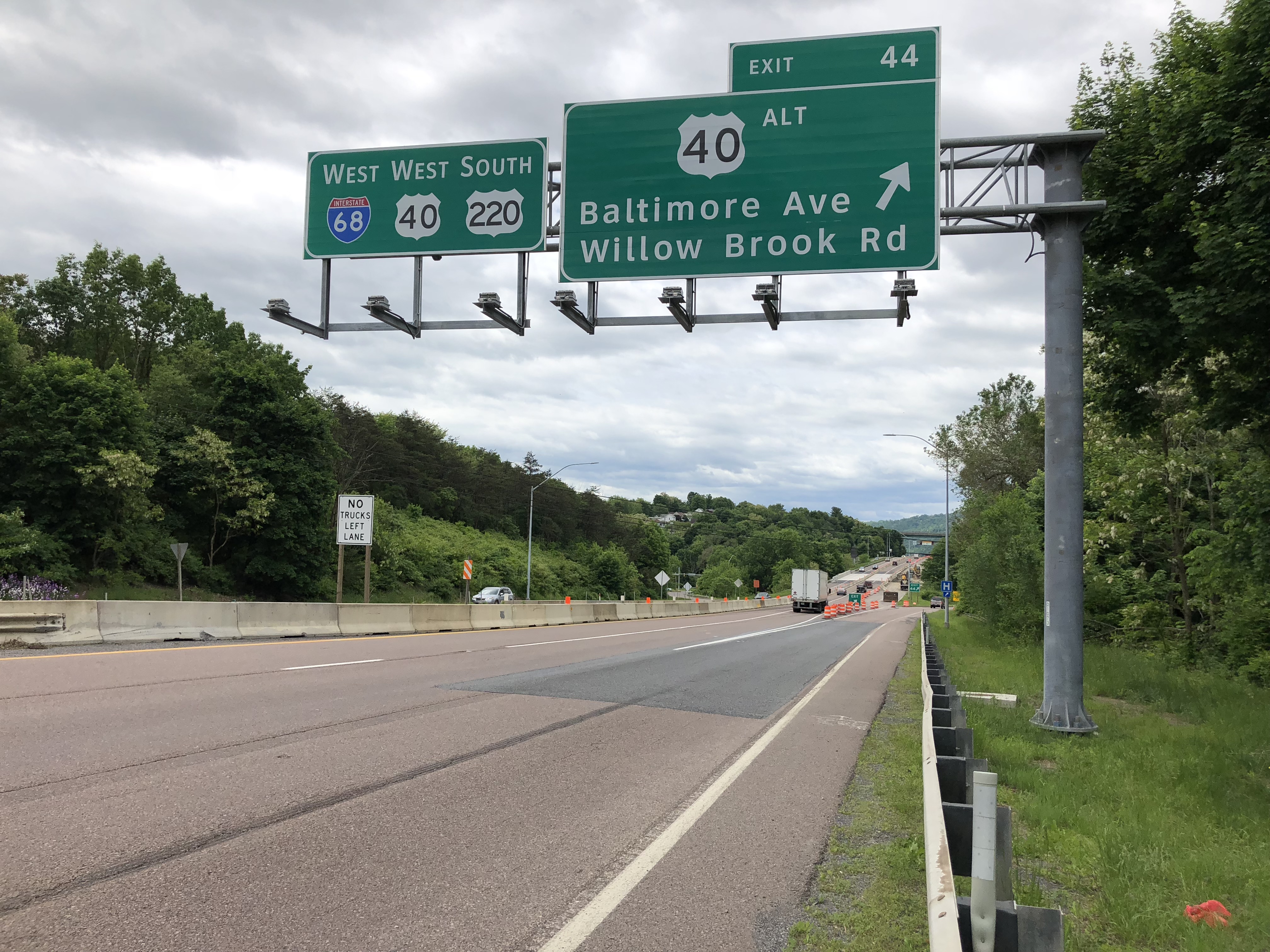 2008년까지 컴벌랜드 시내의 출구 43A 표지판은 WV 28 Alt.로 출구를 표시했다. 이 때문에 많은 트럭 운전사가 WV 28로 가기 위해 이 출구를 사용했다. 이로 인해 트럭이 낮은 철도 육교 아래에 갇혀 리지 교통을 막는 등 리지리, 웨스트버지니아의 WV 28 Alt.에서 문제가 발생했다. 이러한 문제를 줄이기 위해 MDSHA는 출구 43A의 안내 표지판에서 WV 28 Alt.에 대한 언급을 제거하고, 트럭 운전사에게 대신 출구 43B를 사용하여 MD 51로 연결하여 리지리의 낮은 육교를 우회하는 버지니아 애비뉴를 통해 WV 28에 연결하도록 권고하는 경고 표지판을 컴벌랜드와 I-68에 설치했다.[41]