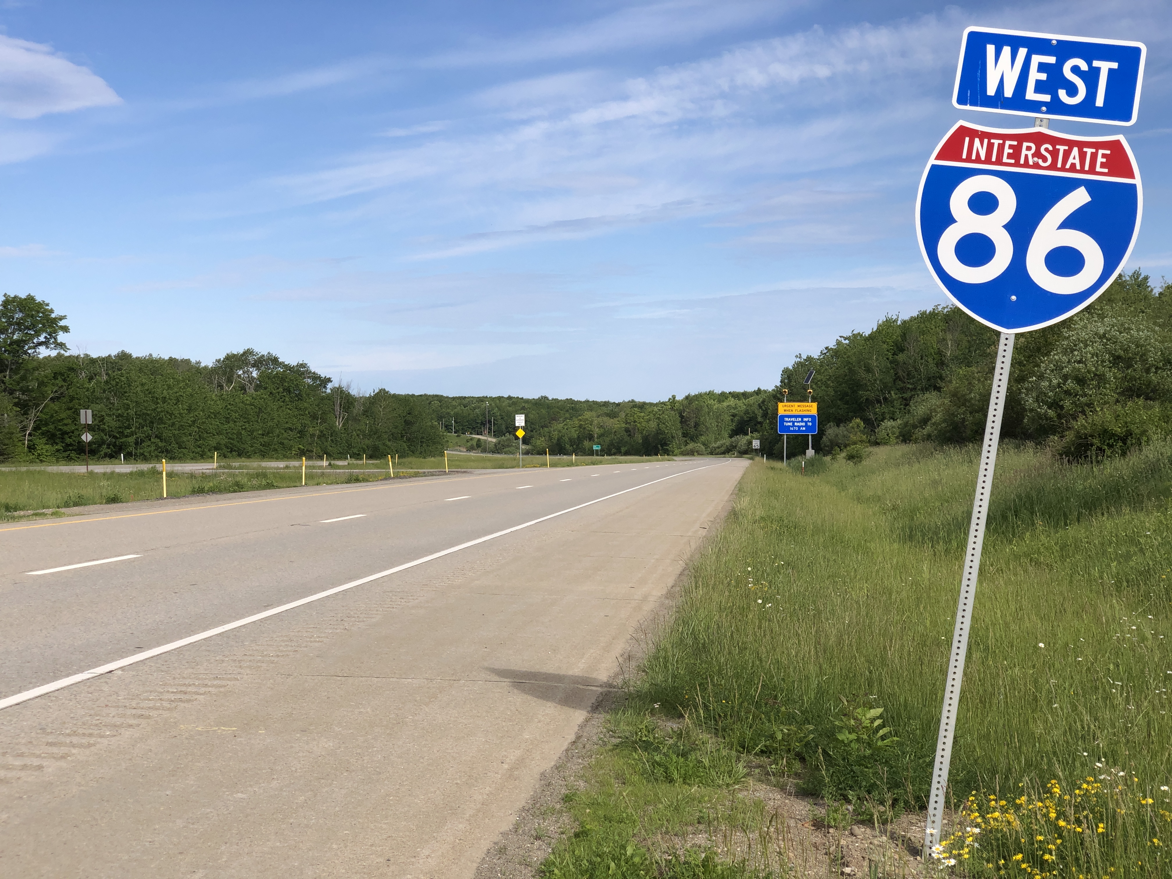 빙엄턴 서쪽에서 I-86으로 공식 지정되지 않은 유일한 구간은 체멍–티오가 군 경계와 I-81 분기점 사이이다. 이 구간 지정은 NYSDOT가 빙엄턴의 I-81, US 11, NY 17, NY 7 분기점에서 프로스펙트 산 건설 프로젝트 완료 후 적용될 예정이었으나,[47] 프로젝트 완료 후에도 2022년 2월 현재 공식적으로 I-86으로 지정되지 않았다.[49]