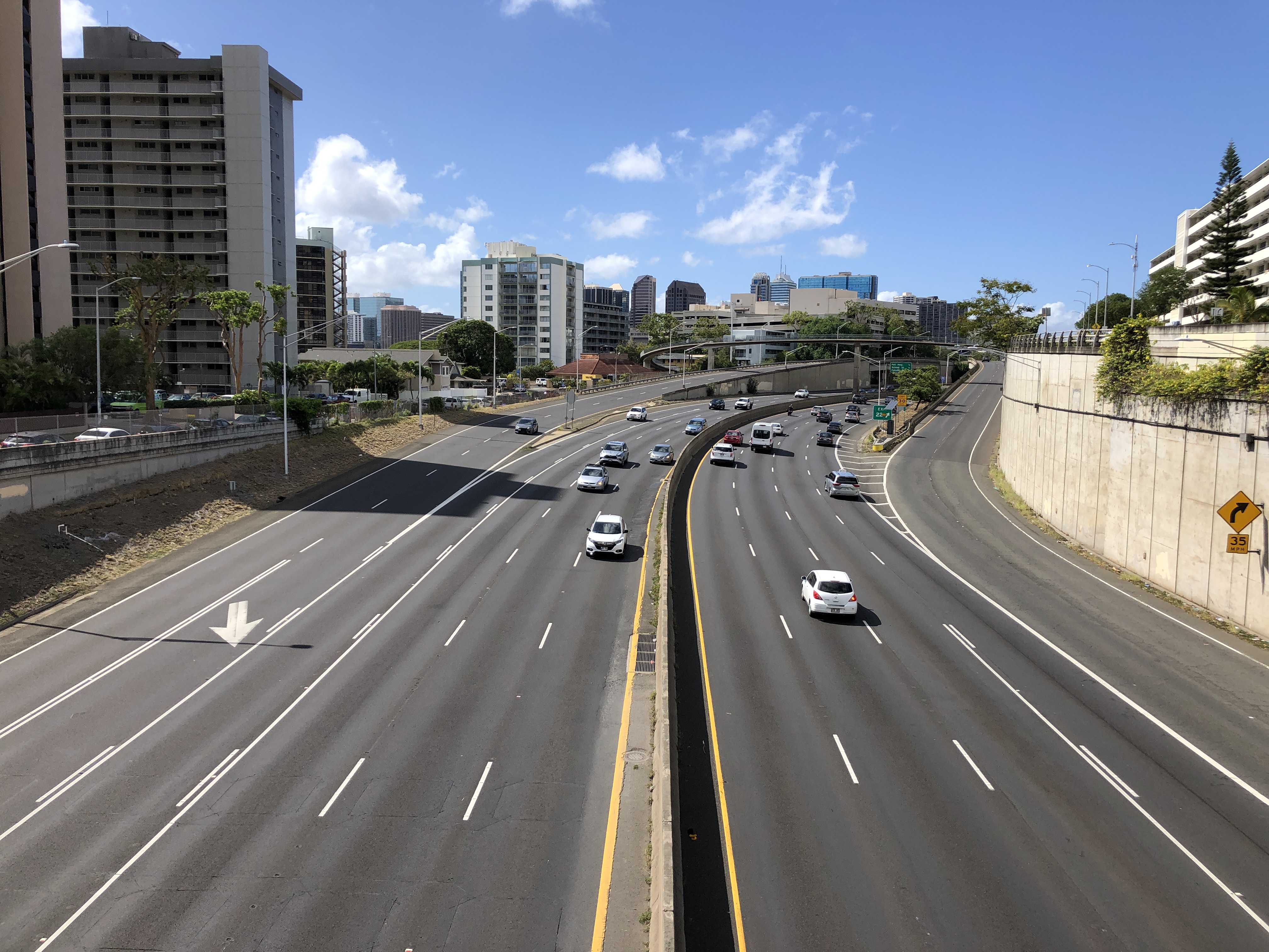 공항 출구를 지나 약 약 3.22km 지점에서 3개 차선이 18A 출구에서 니미츠 고속도로로 합류하여 와이키키 방향으로 이어집니다. 0.5km 후 나머지 2개 차선은 H-1 고속도로가 H-201 고속도로의 동쪽 끝과 또 다른 주요 교차로에 도달하면서 급격히 남쪽으로 방향을 바꾼다. H-1 동쪽에서만 왼쪽 출구를 통해 접근할 수 있으며, H-1 서쪽에서는 이 지점에서 H-201 고속도로로 접근할 수 없다.