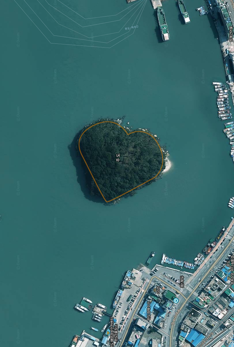 최근 항공 촬영에서 나타나는 주도의 모습이 하트 형상을 하고 있어 하트섬으로 재조명받고 있다.