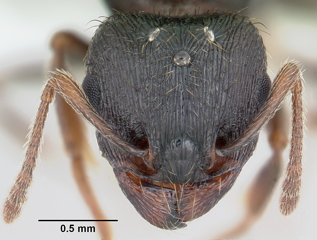 일개미는 몸길이가 2.5mm 정도이며, 흑갈색을 띤다. 머리에는 세로 방향의 주름이 있으며, 곰개미와 유사한 외형을 가지고 있다.[1]2. 2. 여왕개미