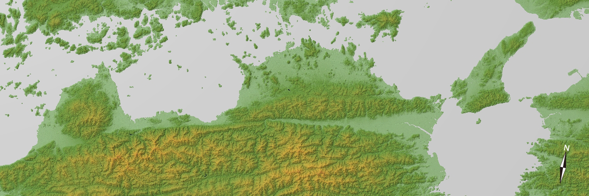• 첫째, 중앙구조선을 따라 형성된 단층선 계곡이나 반도 등의 지형이 예로부터 중요한 교통로나 요충지로 이용되었기 때문이라는 설이다.[79][80][81]