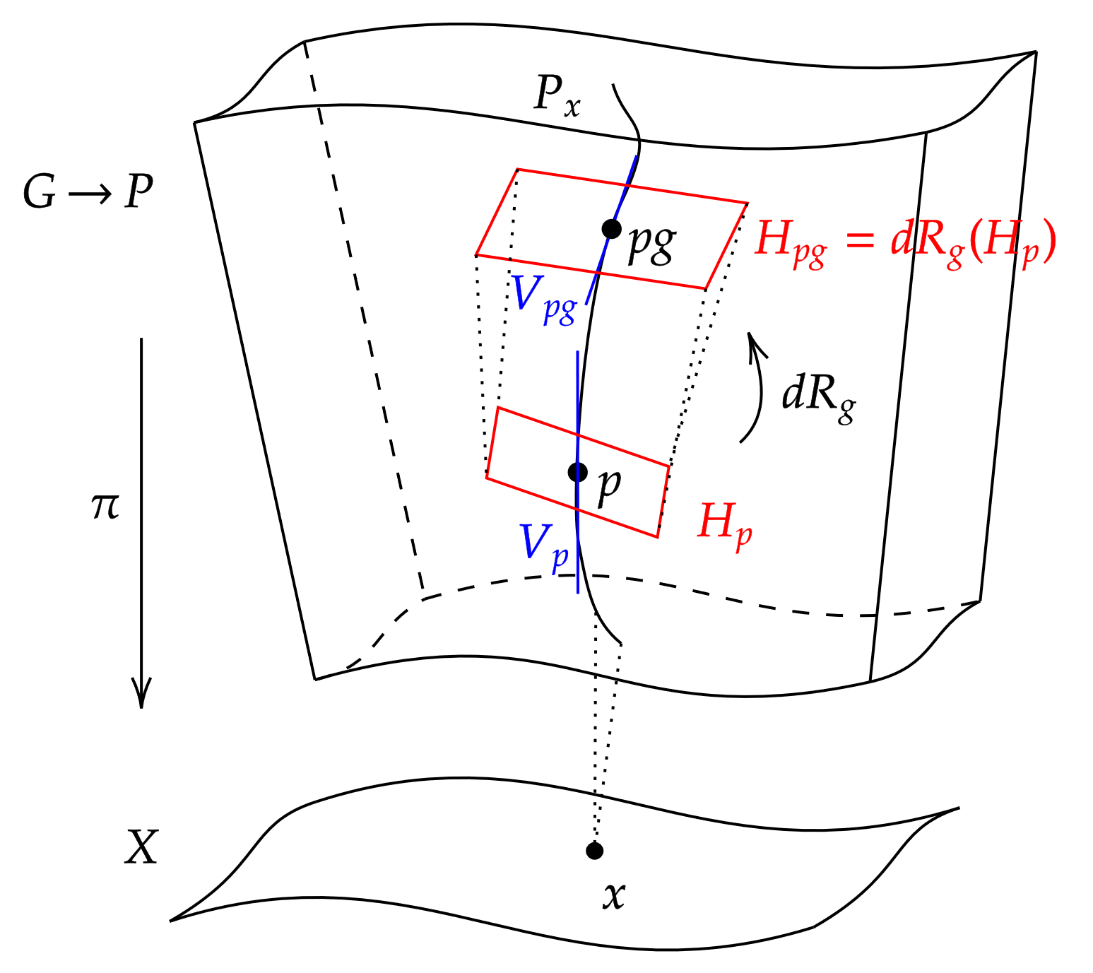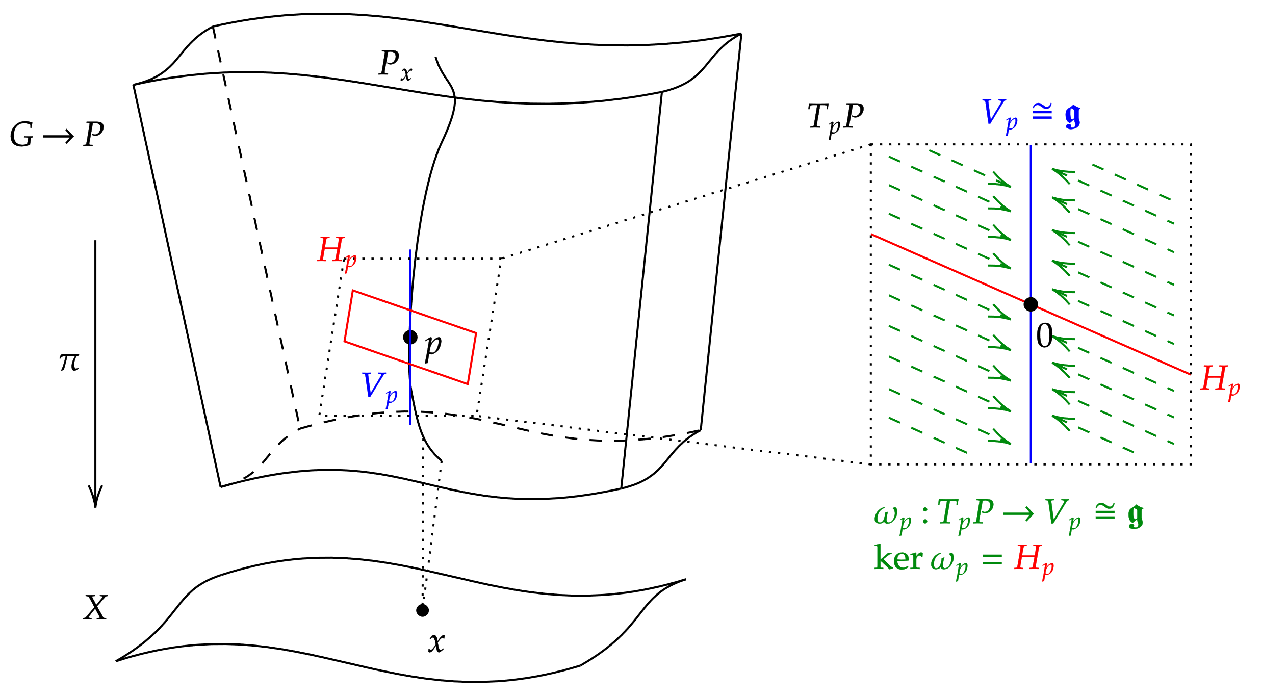 # 만약 이고 가 ''P''에 대한 ''G'' 작용을 미분하여 ''ξ''와 연관된 벡터 필드이면, 이다. (''P''에서 동일하게)