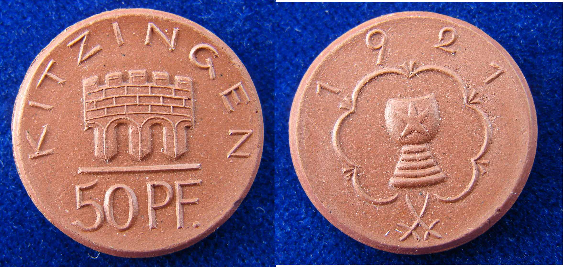 도자기 화폐 | ![]() | 도자기 50 페니히 노트겔트 (1927년, 바이에른)로 마이센 도자기 공장에서 제작[20] |