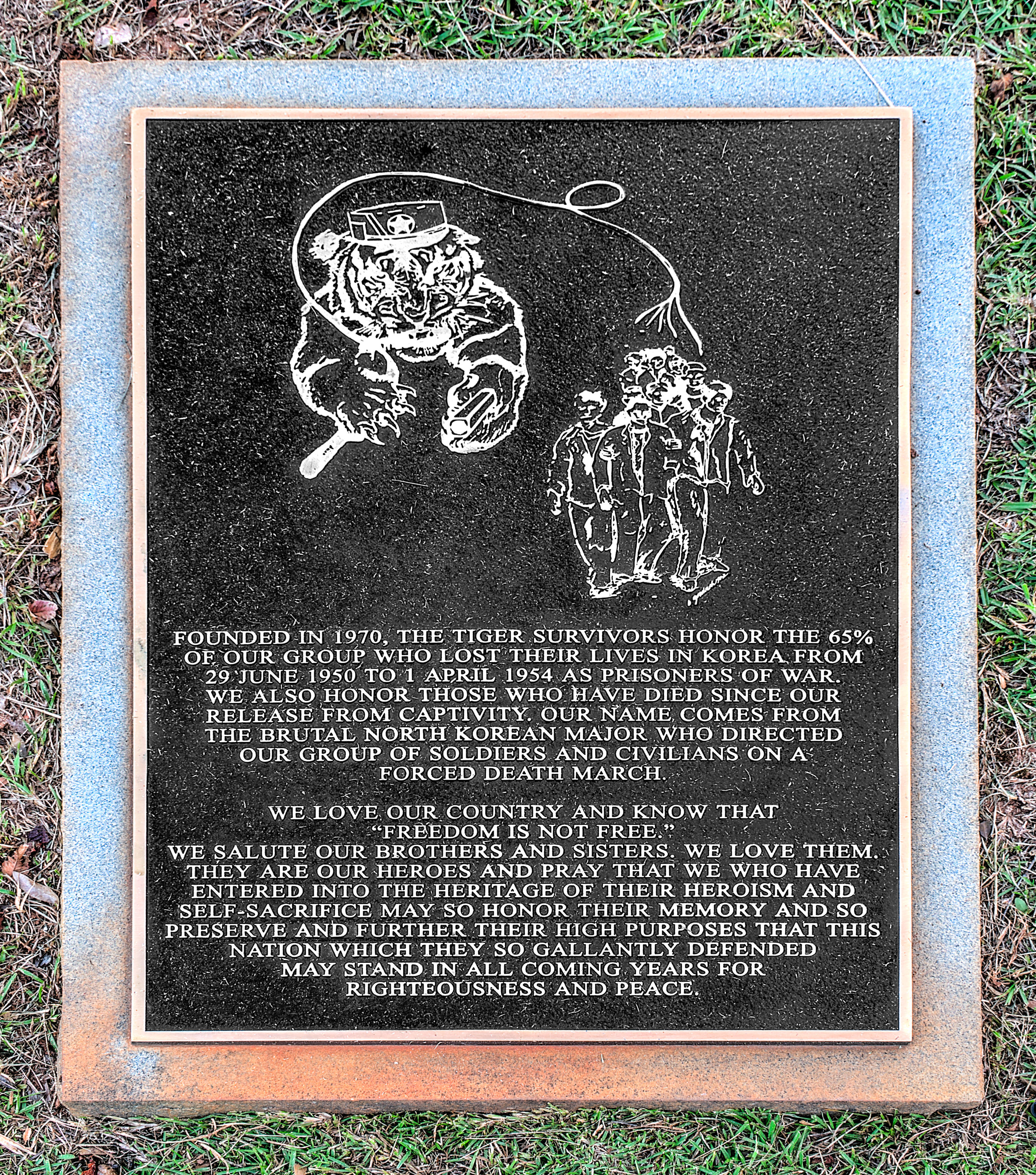 조선민주주의인민공화국군에 포로로 잡힌 사람들은 "호랑이 죽음의 행진"으로 알려진 고난을 겪었다. 이 행진은 조선민주주의인민공화국이 유엔군에 의해 밀려나면서 중국과의 국경인 압록강으로 후퇴하는 과정에서 발생했다. 1950년 10월 31일, 만포시를 출발한 약 845명의 포로들(약 80명의 비전투원 포함)은 강을 거슬러 올라가 1950년 11월 8일에 중강진에 도착했다. 1년 후, 생존한 포로는 300명이 채 되지 않았다. 이 행진은 이를 지휘한 잔혹한 조선민주주의인민공화국 대령의 별명인 "호랑이"에서 유래되었다. 포로 중에는 서울에 주둔했던 MI6 요원 조지 블레이크도 있었는데, 그는 포로로 잡혀 있는 동안 KGB 이중 간첩이 되었다.[36]