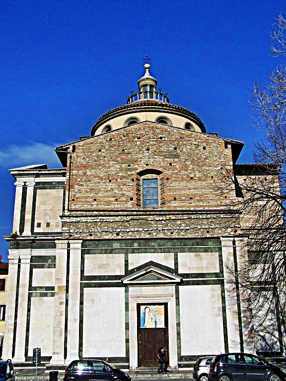 1484년, 프라토 마을의 한 아이가 공공 감옥 옆에 있는 성모 마리아와 아기 예수의 그림이 살아 움직이는 것을 보았다고 주장했다. 마을 사람들이 이것을 기적으로 선포하고 환상이 일어난 장소에 그 기념으로 산타 마리아 델레 카르체리를 짓기로 결정한 후, 로렌초 데 메디치는 자신이 가장 좋아하는 건축가인 줄리아노를 고용했다. 그의 설계는 알베르티와 브루넬레스키의 작품 연구에 크게 의존했다.[1] 특히 줄리아노는 그리스 십자가 평면을 사용했는데,[1] 이것은 중앙 신랑에서 길이가 같은 네 개의 팔이 뻗어나가는 고전적인 배치 설계이며, 그 이전까지는 르네상스에서 광범위하게 사용된 적이 없었다. 교회 건설은 1486년에 시작되었지만, 파사드는 오늘날까지 미완성 상태로 남아 있다.[1]