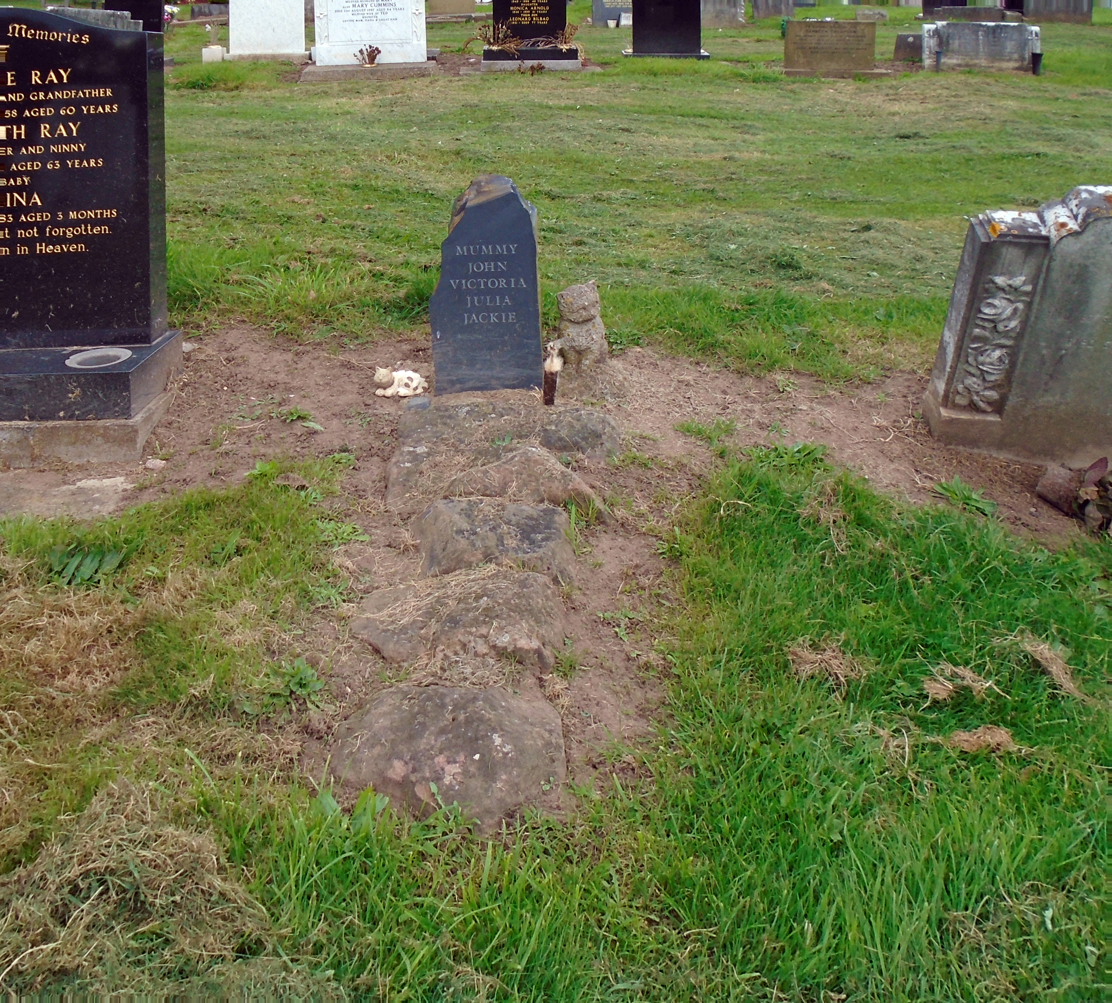줄리아는 리버풀의 앨러턴 묘지에 안장되었다. 그녀의 묘지는 한동안 표식이 없었으나, 나중에 "CE (잉글랜드 국교회) 38-805"로 확인되었다. 묘지의 위치는 1 블롬필드 로드에서 동쪽으로 약 1.19 마일 떨어져 있다. 이후 묘지에는 나무 십자가 대신 "엄마, 존, 빅토리아, 줄리아, 재키"라는 글귀가 새겨진 묘비가 세워졌다.[17] 가족들은 이 묘지가 "가족을 위한 사적인 일이지 대중을 위한 일은 아닐 것"이라고 언급했다.[2]