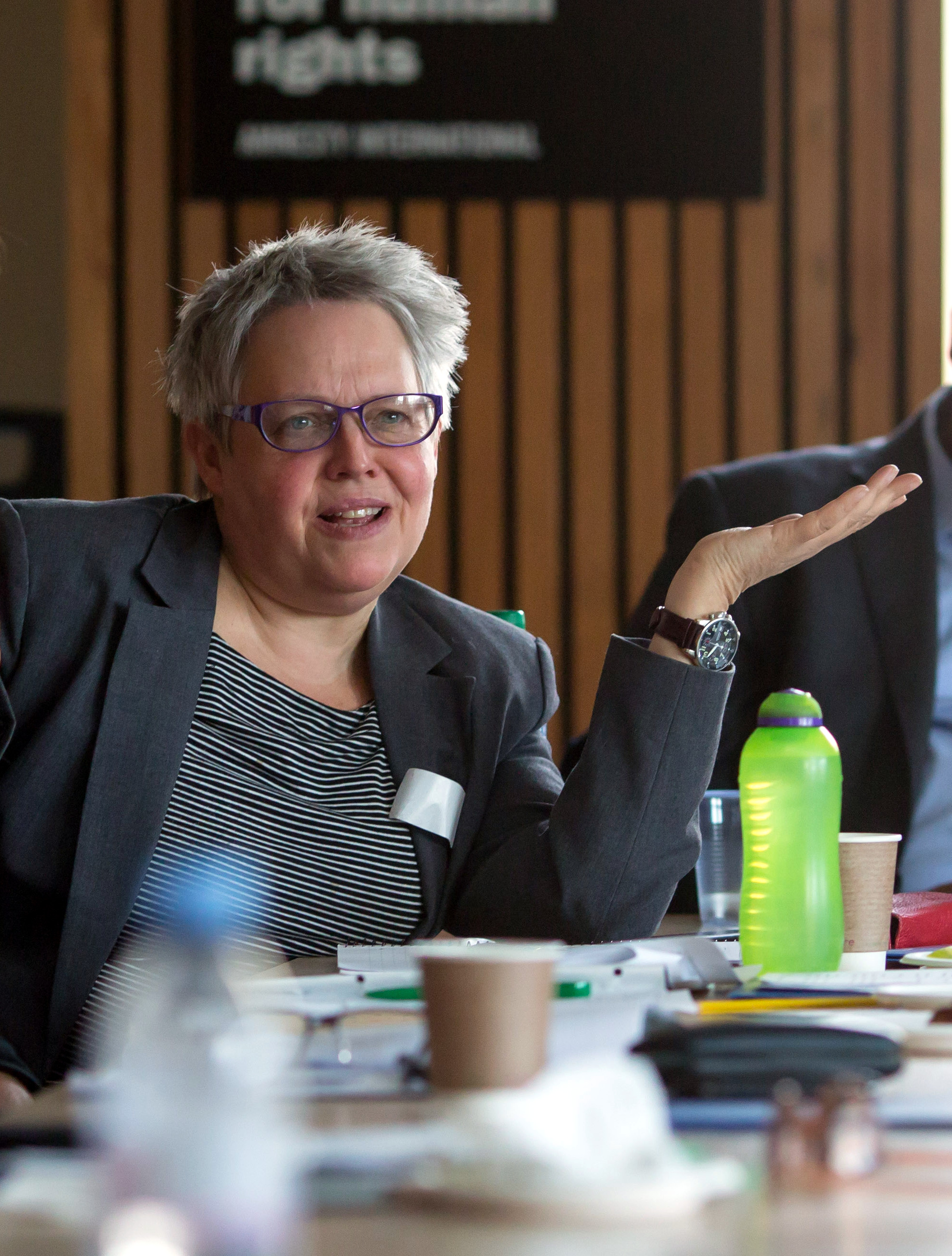 특히 여성에 대한 폭력 문제 해결에 깊이 관여하여, 1991년 변호사 해리엇 위스트리치, 힐러리 매콜럼과 함께 여성주의 법 개혁 단체인 Justice for Women (JFW)을 공동 설립했다.[28][5] JFW는 폭력적인 파트너에 의해 고통받다 살인을 저지른 여성들이 법적으로 불리한 처우를 받는 현실에 맞서 싸웠다. 사라 손턴, 키란지트 알루왈리아, 엠마 험프리스 등의 석방 운동을 지원했으며, 남성 중심적인 도발 법 조항 개정을 위해 사우스홀 블랙 시스터스와 연대하여 10년 이상 캠페인을 벌여 2008년 법 개정을 이끌어내는 중요한 성과를 거두었다.[29][6][1][30][31][36][37]