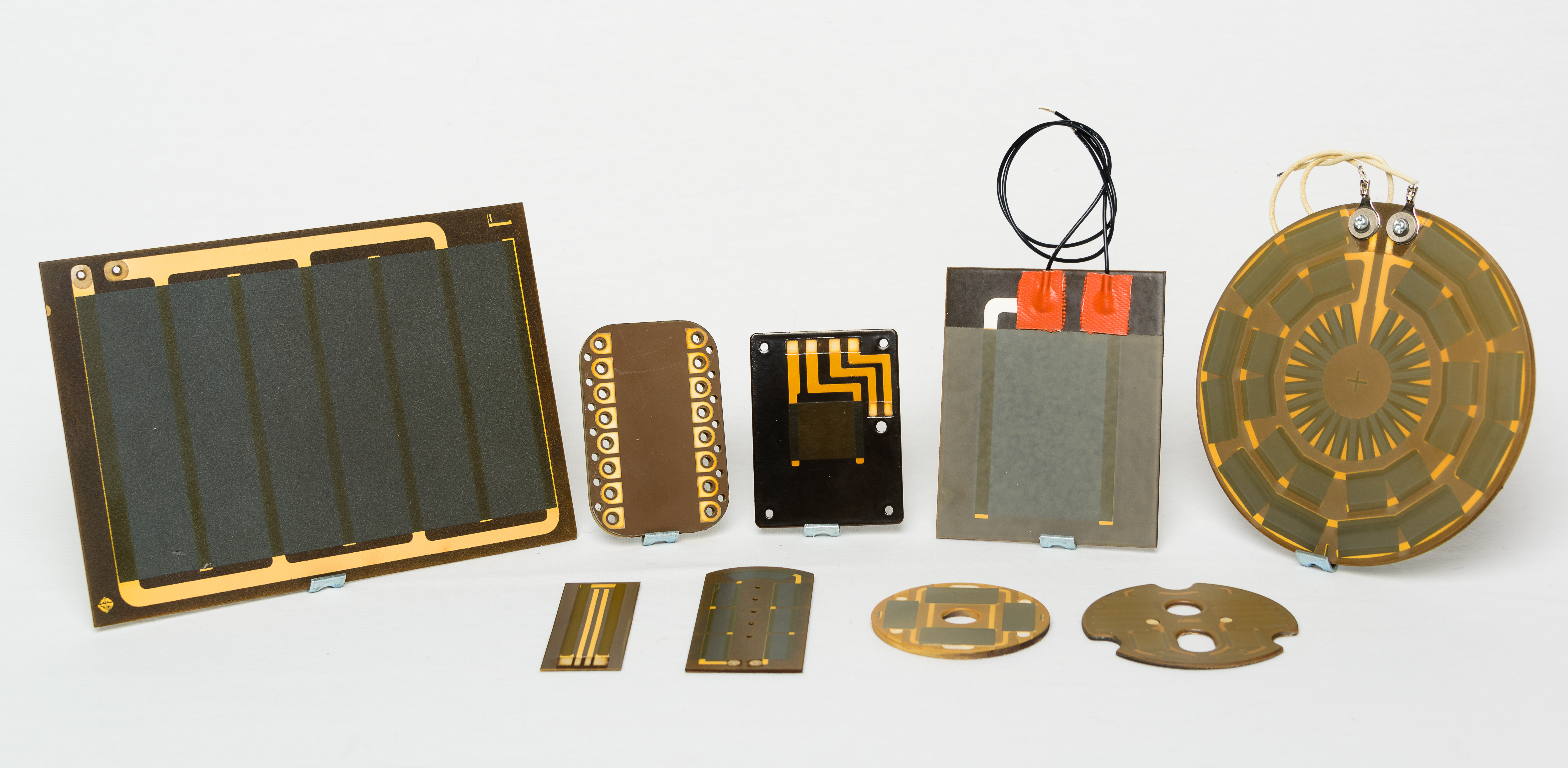 금속, 세라믹, 유리, 폴리머 등 다양한 기판에 금속 또는 합금이 포함된 두꺼운 필름 페이스트를 사용하여 인쇄할 수 있다.[8] 가장 일반적인 기판은 알루미늄 6061-T6, 스테인리스 스틸, 백운모 또는 금운모 시트이다. 히터의 적용 및 작동 특성은 선택한 기판 재료의 열 특성에 따라 크게 달라진다.