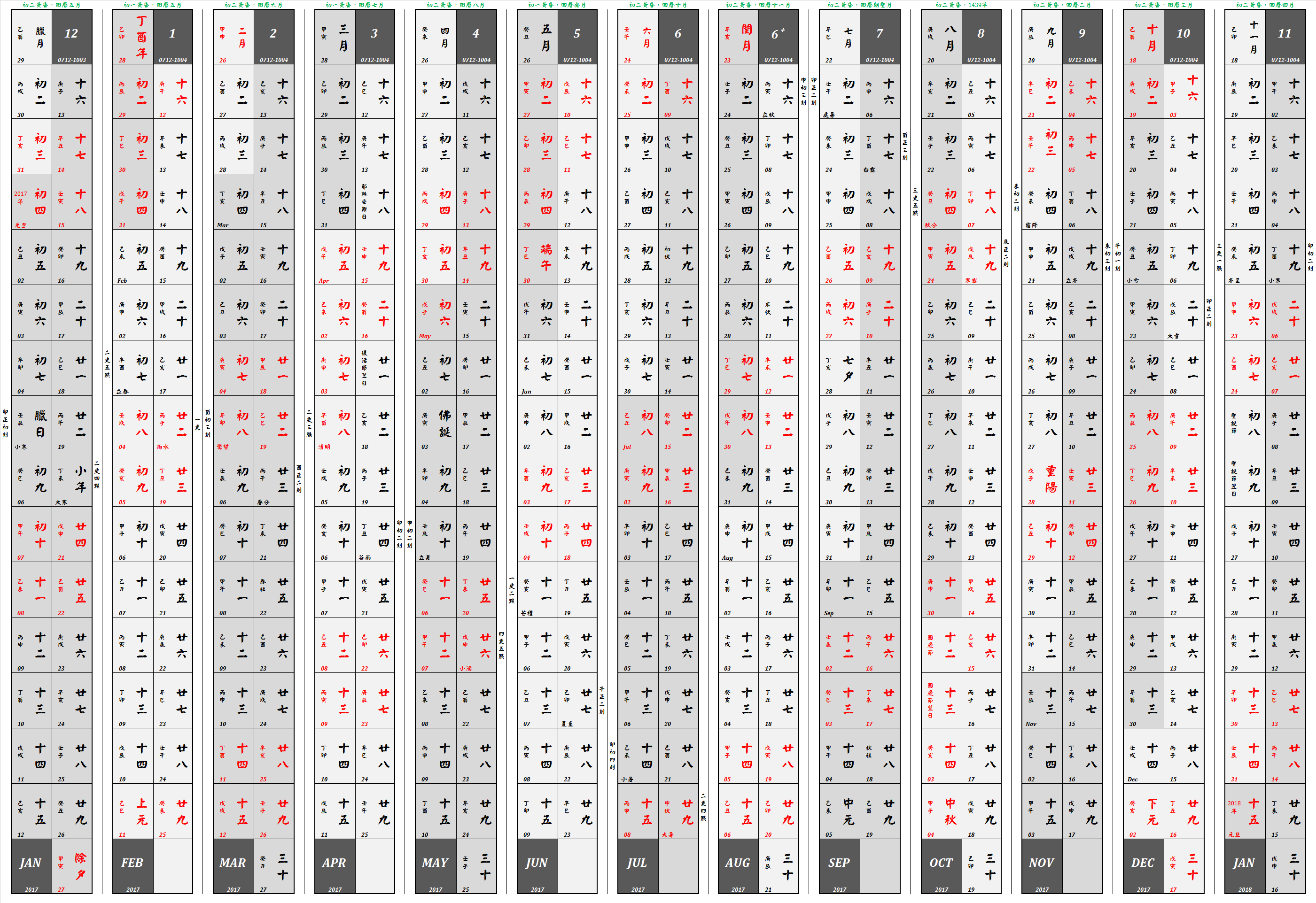 舊曆, 老曆, 古曆, old calendar | 新曆, new calendar |