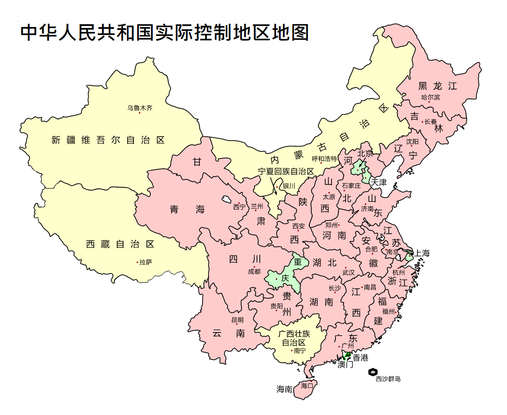 중국 국공 내전은 1949년 국민당이 중국 본토에서 철수하면서 끝났다. 국민당 정부는 타이베이로 이전했고, 일부 섬만 통제하게 되었다. 반면 중국 공산당은 중국 본토를 장악했다. 1949년 10월 1일, 마오쩌둥은 중화인민공화국 수립을 선포했다.[55] "공산주의 중국" 또는 "붉은 중국"으로도 불렸다.[56]