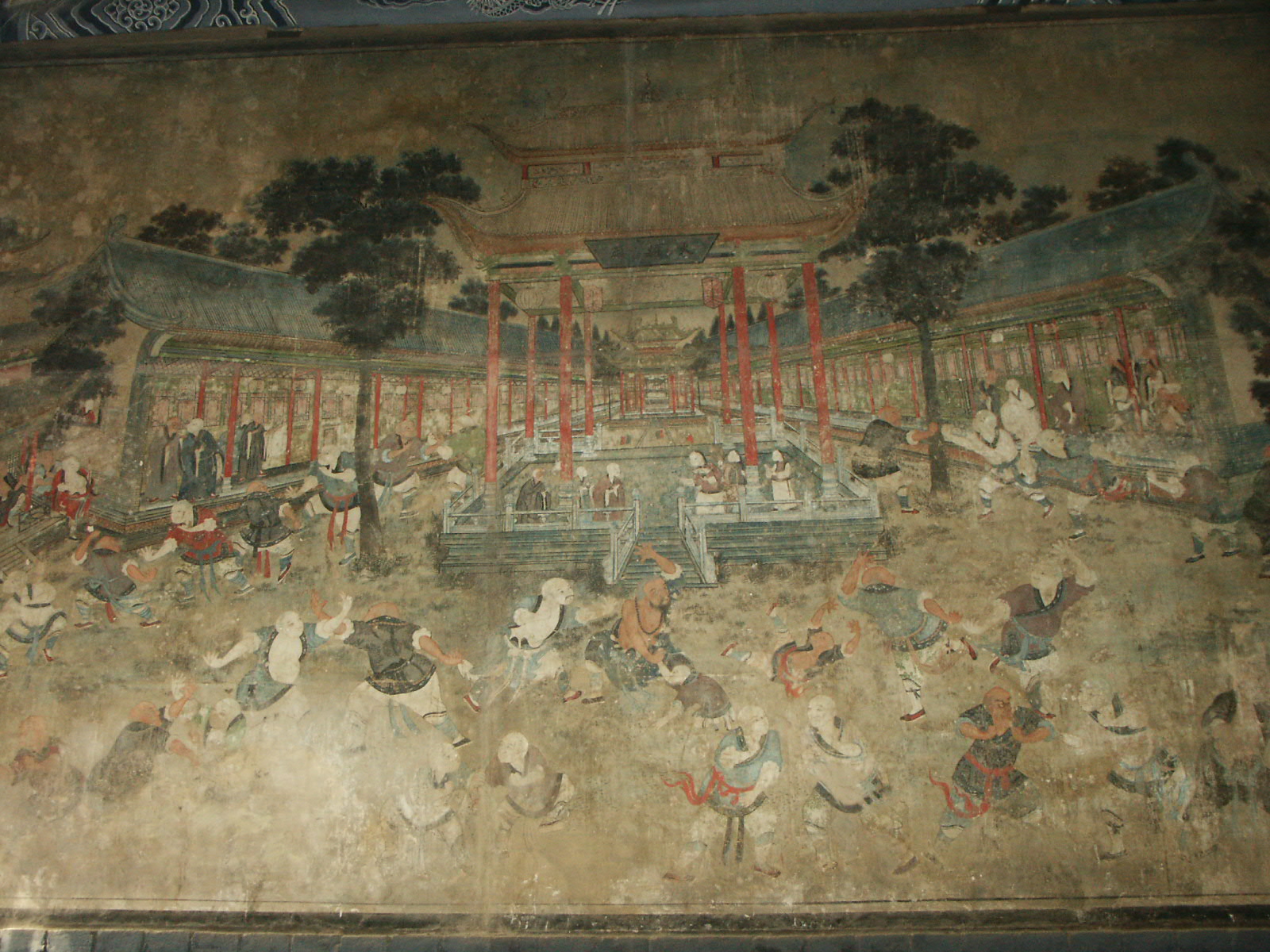소림사는 중국 무술이 체계화된 초기 사례 중 하나로 여겨진다. 소림사가 무술에 관여했다는 가장 오래된 기록은 728년에 세워진 비석에 있다. 이 비석에는 610년경 소림사가 산적들로부터 자신들을 방어한 사건과 621년 호뢰 전투에서 왕세충을 물리치는 데 기여한 두 가지 사건이 기록되어 있다.[14] 그러나 8세기에서 15세기 사이에는 소림사가 전투에 참여했다는 것을 증명하는 기록은 남아 있지 않다.