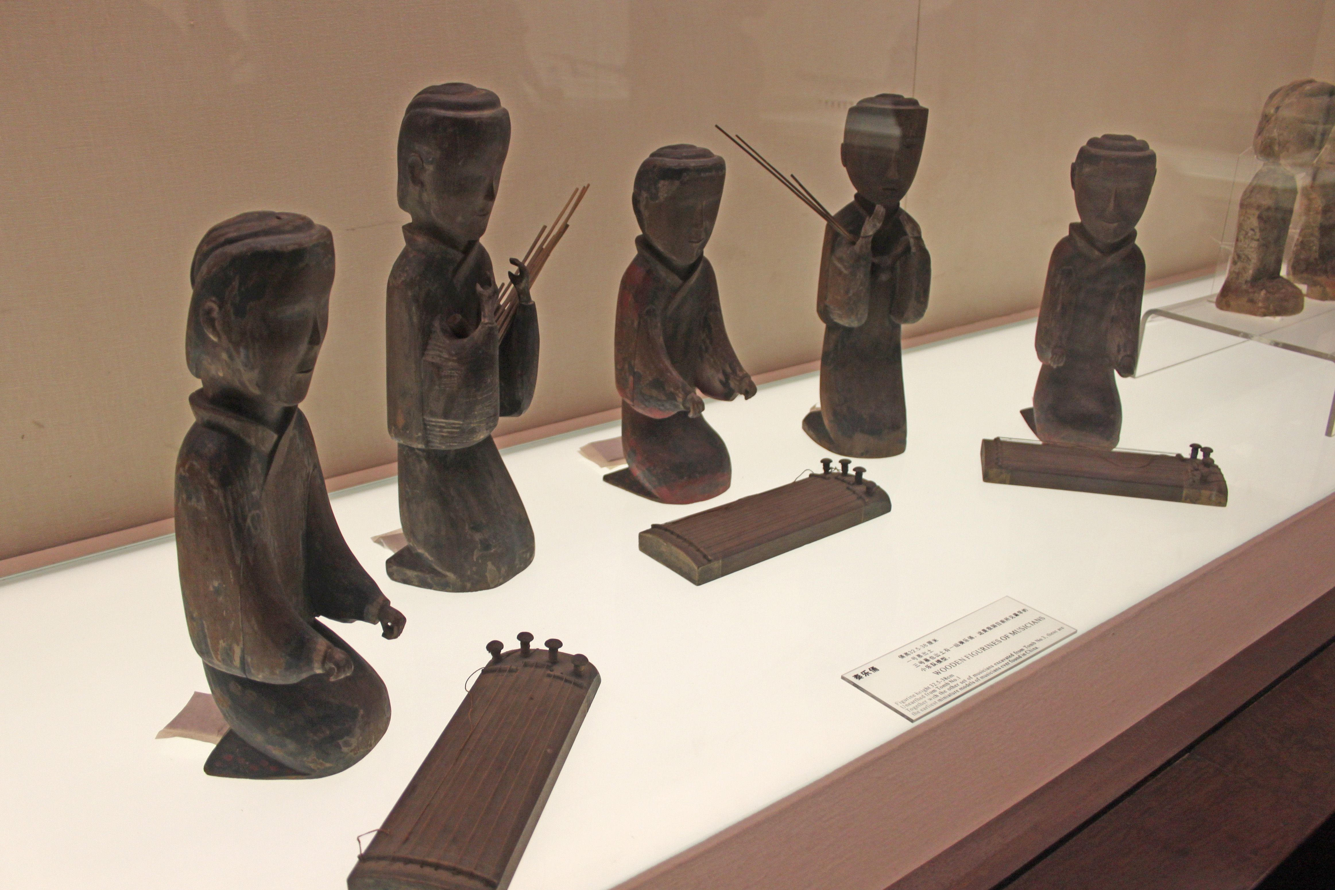 - 고유 음악의 시대 (태고 ~ 4세기): 한민족 고유 음악이 발달하여 독자적인 형식을 갖춘 시기이다. 은나라 시대에는 음악이 전설로만 전해지지만, 주나라 시대에는 칠현금이 나타나고 시경이 편찬되는 등 음악의 기틀이 잡혔다. 삼분손익법을 통해 오성과 십이율이 정해졌다.[3] 한나라 시대에는 아악을 관장하는 대악서(大樂署)가 설치되었다.[3]