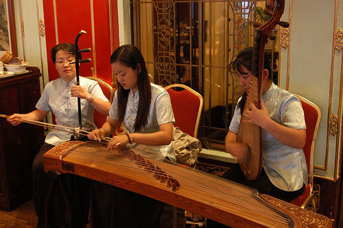 중국 철학자들은 음악에 대해 서로 다른 견해를 보였다. 공자는 아악을 중요시하며 개인 수양과 국가 통치에 필수적이라고 보았지만, 일부 대중음악은 부패한 것으로 여겼다.[7][8] 묵자는 음악을 사치와 탐닉으로 비난했다.[9] 맹자는 통치자가 백성을 사랑하는 것이 중요하다고 말했다.