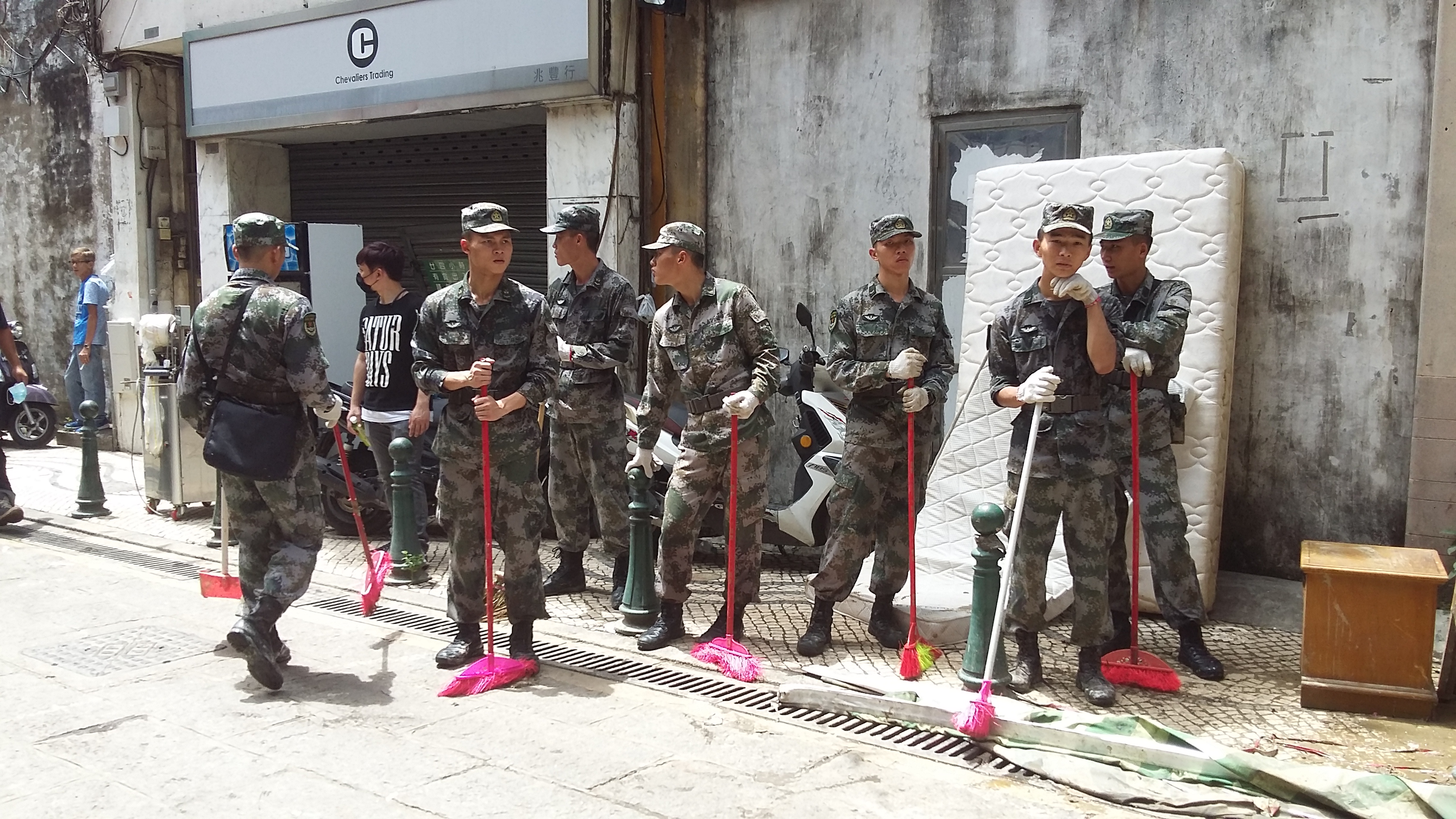 실제로 2017년 8월, 마카오가 태풍 하토로 큰 피해를 입자, 마카오 특별행정구 정부의 최세안 행정장관은 중국 정부에 재난 구호 지원을 요청했다.[12] 이에 따라 주마카오부대 병력 약 1,000명이 투입되어 잔해 제거 및 도로 정리 등 피해 복구 활동을 지원했다.[4][5] 이는 마카오 반환 이후 주마카오부대가 마카오 내부 문제에 개입한 첫 사례였다.[4][12]