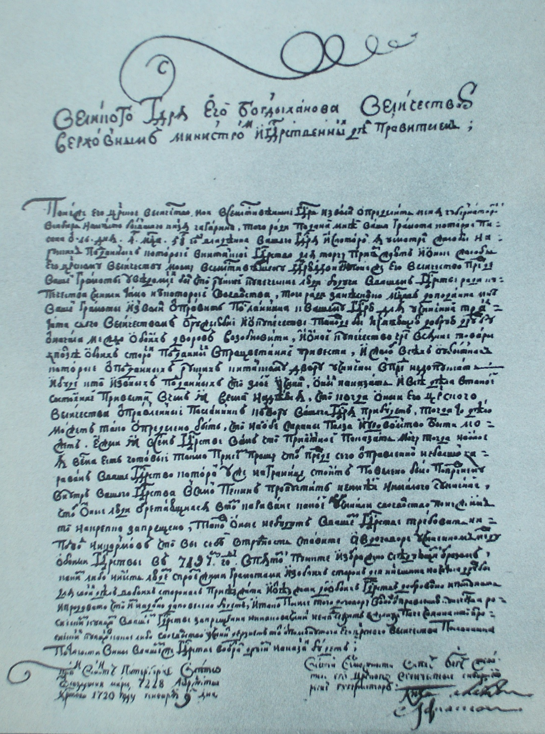 강희제 치하의 정부에 보낸, 표트르 1세 치하의 러시아 정부의 서한 (1720년)