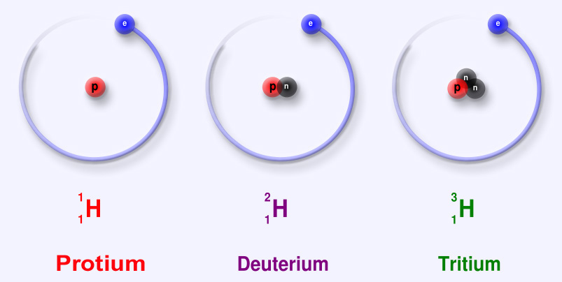 지구상에서 수소 원자와 중수소 원자의 비율은 수소가 99.985%, 중수소가 0.015%이다.