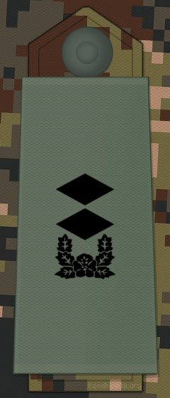 일본 자위대에서는 '2위'(略称)라고 칭한다.[142] 경찰에서는 경부 또는 경부보에 상당하며, 중앙관청에서는 본성 계장, 주임 및 계원에 상당한다.[142]일반 대학교 대학원 석사 과정 수료자(예정 포함)로 자위대 간부 후보생 시험에 합격한 자나, 방위의과대학교를 졸업 후 의사 국가시험에 합격한 자 등은 1년 이내의 규정 교육 기간을 거친 후 곧바로 2등육·해·공위로 임명된다.[142] 이 시험은 경쟁률이 수십 배에 달하는 난관이다.[142]