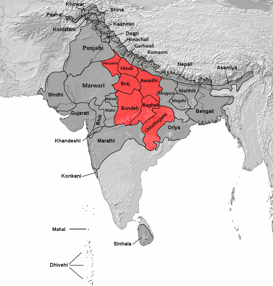 | 하위 언어 | 서부 힌디어군 동부 힌디어군 |