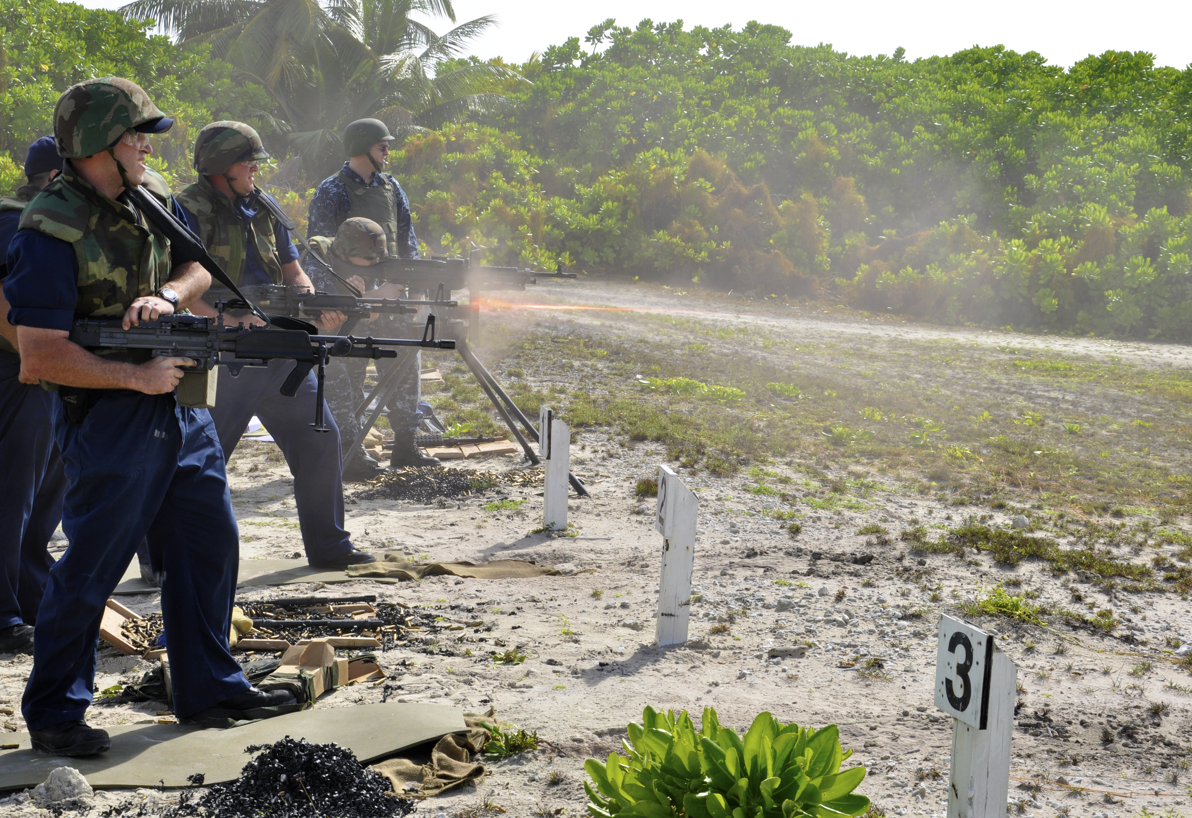 미국 해병대는 중기관총(MMG)을 일반적으로 .264 - .33 구경(6.5mm - 8mm)의 자동 화기로 분류한다. M240G 기관총이 대표적인 예시이다.[4] 중기관총의 무게는 탄약 50발을 장전한 상태에서 약 11.34kg 이상이며, 예비 탄약, 지상용 삼각대, 예비 총신, 기타 부속품을 포함하면 전체 무게는 약 11.34kg 정도 더 무거워질 수 있다. 보통 3명의 병사가 운용하며, 사용 탄두 무게는 140 - 220 그레인 정도이다. 1,500m 이내의 병력 또는 경장갑 차량(자동차 등)을 공격하는 데 적합하다.[4]2. 3. 대한민국 국군 및 일본 자위대