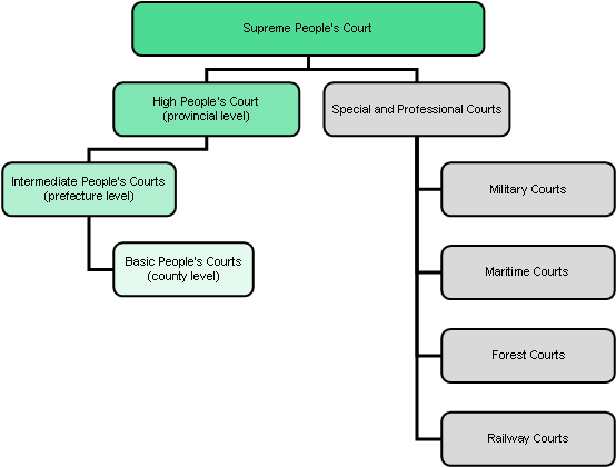 법원 시스템 | 최고인민법원 지방인민법원 특별인민법원 |