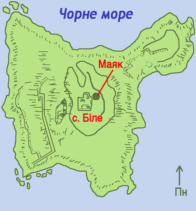 러시아 제국의 흑해 함대가 1842년 가을에 즈미이니 섬 등대를 건설했다.[11] 이 등대는 해수면에서 40m 높이에 있는 섬의 가장 높은 곳 근처에 위치한 12m 높이의 팔각형 건물이다. 이 등대는 이전에 파괴된 아킬레우스 사원 부지에 지어졌으며 주거 건물과 인접해 있다. 그리스 사원의 유물은 1823년에 발견되었다.