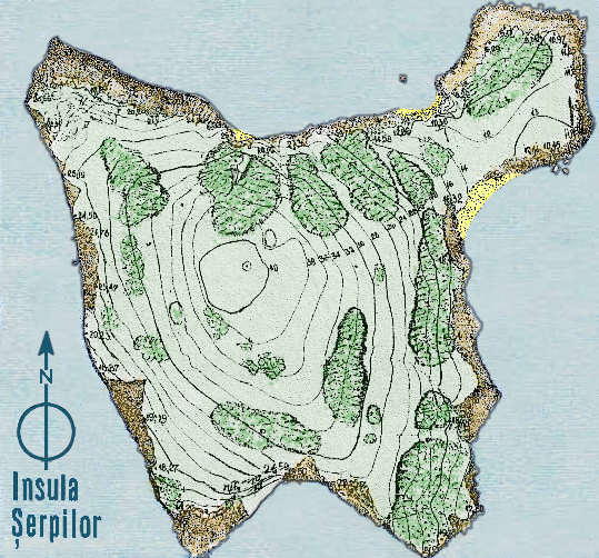 1823년 러시아 해군 대위 N. D. 크리츠키가 발견한 아킬레우스에게 바쳐진 정사각형 신전의 유적은 한 변이 30미터였지만, 등대 건설로 모든 흔적이 사라졌다.[28] 오비디우스는 토미스로 추방되었으며, 이 섬을 언급했고, 프톨레마이오스와 스트라보도 언급했다.[29] 이 섬은 대 플리니우스의 ''박물지''(IV.27.1)와 아리아누스의 하드리아누스 황제에게 보낸 편지에도 묘사되어 있으며, 마르그리트 유르스나르는 ''하드리아누스 황제의 회고록''에서 이를 감동적으로 언급했다.
