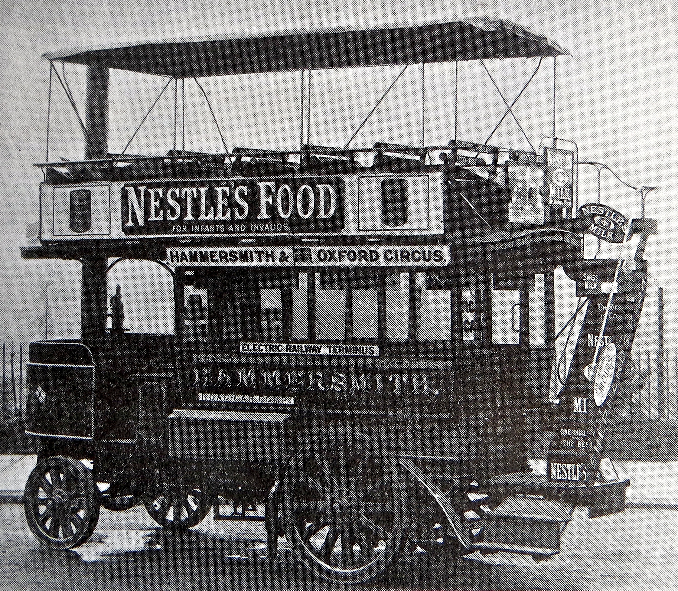 1902년 런던 로드 카 컴퍼니(London Road Car Company)는 소니크로프트(Thornycroft) 사에서 제작한 증기 버스를 도입하였다. 이 버스는 32인승[39] 또는 36인승(내부 12인승)[8]이었으며, 해머스미스(Hammersmith) - 셰퍼드즈 부시(Shepherd's Bush) - 옥스퍼드 서커스(Oxford Circus) 구간 노선에서 운행되었다.[39][8]