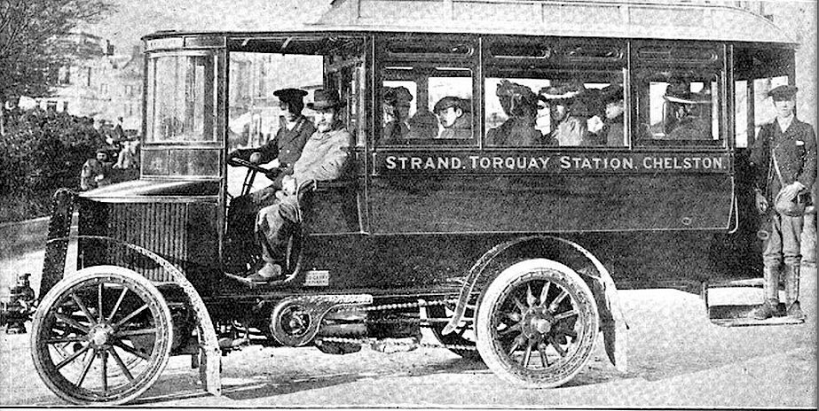 토머스 클락슨은 첼름스포드의 몰샴 공작소(Moulsham Works)에서 증기 버스를 생산했으며, 이 버스는 "첼름스포드"라는 이름으로 알려졌다. 그는 1903년과 1905년 모터쇼에 이 버스를 전시했다.[41][10]토키에서는 1903년부터 1923년까지 첼름스포드 증기 버스가 운행되었다. 1903년 5월 시범 운행 후, 7월 23일 '토키 앤 디스트릭트 모터 옴니버스 컴퍼니 리미티드'(Torquay & District Motor Omnibus Co Ltd)가 설립되었다. 회사는 사업 계획서에서 "첼름스포드 모터 옴니버스는 증기로 구동되며, 토키와 같은 도시에서는 냄새, 소음, 진동이 없다는 점이 중요하다"고 홍보했다.[42][11] 1903년 5월에 주문한 14인승(승객 12명, 운전자 2명) 단층 버스 3대는 8월에 제작되었으나, 솔즈베리와 엑서터 사이의 진흙탕에 빠져 11월 2일에야 토키에 도착하여 운행을 시작했다.[43][12] 첫 주 승객은 2,828명이었다. 1904년 1월에 2대가 추가되었고, 1905년 부활절에는 총 8대로 늘어났으며, 마지막 3대는 20인승이었다. 이 버스들은 2기통 수평 엔진과 관형 보일러를 사용했으며, 작동 압력은 150psi에서 250psi 사이였다. 연료는 파라핀을 사용했고, 연비는 1갤런당 약 6.12km였다. 1904년 운행 비용은 마일당 8.5펜스 미만이었으며, 윤활유 0.2펜스, 인건비 및 연료비 5펜스, 수리 및 기타 비용 3.3펜스로 구성되었다. 요금은 1페니에서 4페니 사이였고, 배차 간격은 노선에 따라 15분 또는 30분이었다. 회사는 첫해에 7.5%의 배당금을 지급했다.[42][11]
