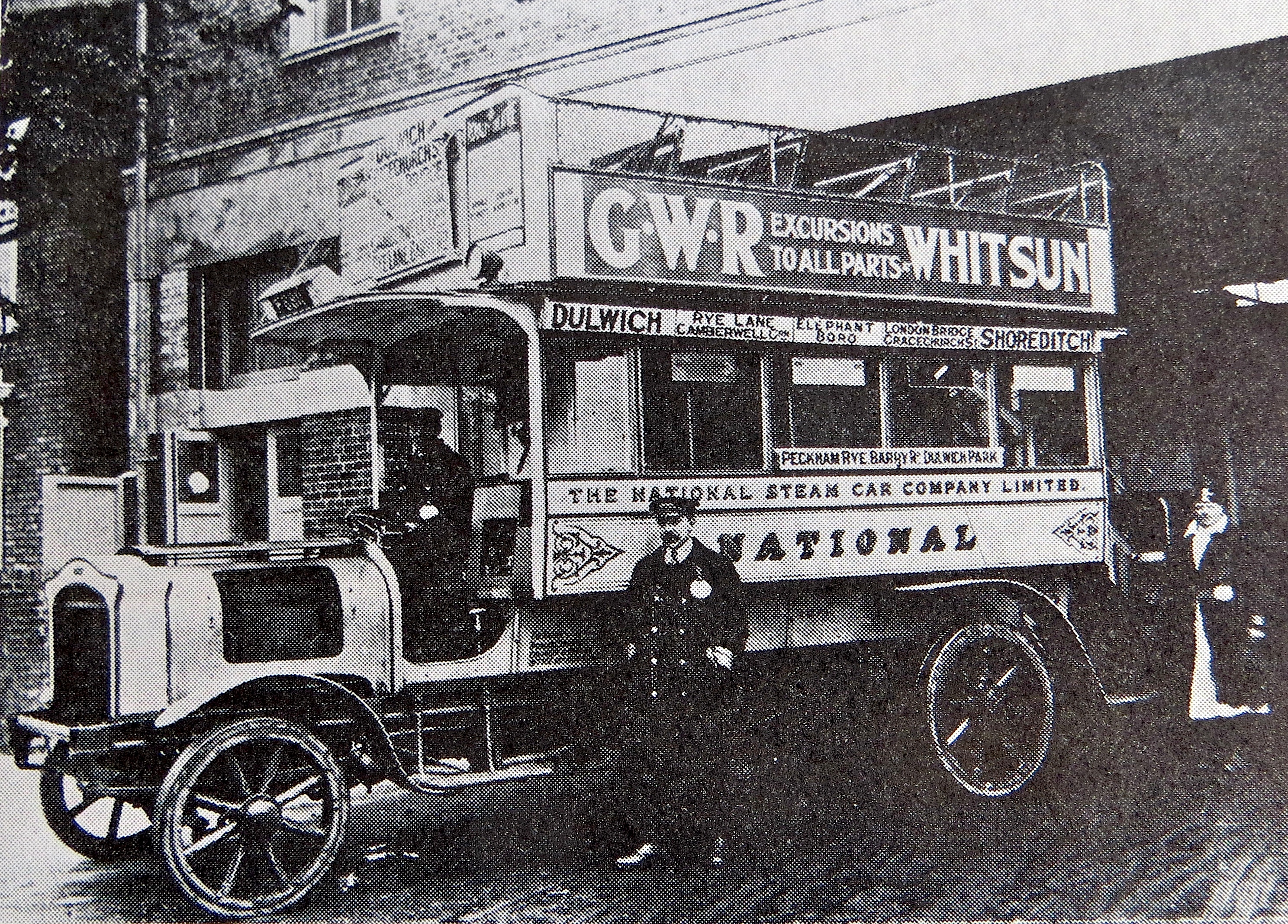 1899년 하운즐로의 E. 질레트 앤 컴퍼니(E. Gillett & Co)는 2층 구조로 14석을 포함한 총 24인승 증기 버스의 면허를 취득했으나, 정규 노선 운행에는 이르지 못했다.[38][7] 1901년에는 영국 자동차 제조사 스트레이커-스콰이어의 증기 버스가 포터리스 일렉트릭 트렉션 컴퍼니(Potteries Electric Traction)에 의해 운영되었다.[39][8] 런던 로드 카 컴퍼니(London Road Car Co)는 1902년부터 소니크로프트(Thornycroft) 사의 36인승(내부 12인승) 버스로 해머스미스 - 셰퍼드즈 부시 - 옥스퍼드 서커스 구간을 운행하였다.[39][8] 토머스 클락슨(Thomas Clarkson)은 첼름스퍼드의 몰샴 공작소(Moulsham Works)에서 제작한 증기 버스 "첼름스포드"(Chelmsford)를 1903년과 1905년 모터쇼에 전시하였다.[41][10]