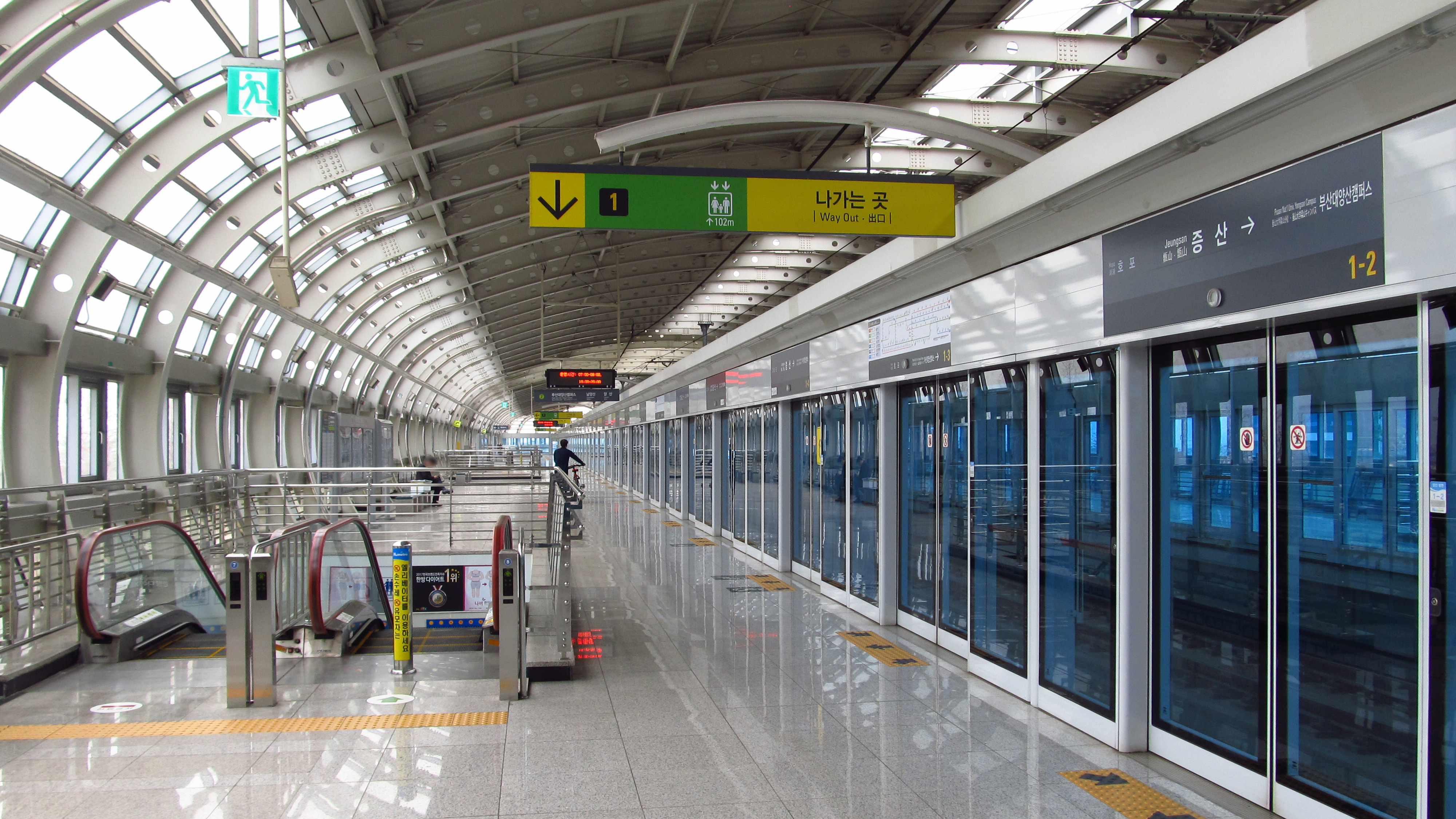 2면 2선의 상대식 승강장을 갖춘 지상 고가역이며, 스크린도어가 설치되어 있다. 반대편 횡단은 불가능하다.