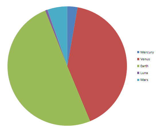 태양계의 수성, 금성, 지구, 화성과 같은 지구형 행성들은 태양으로부터 거리가 멀어질수록 밀도가 낮아지는 경향을 보인다. 이는 원시 태양계 성운 내에 존재했을 온도 기울기와 관련이 있는 것으로 추정된다.[11]행성의 평균 밀도는 행성 크기, 온도 분포, 재료 강성, 조성 등에 따라 달라진다. 비압축 밀도는 압력이 0일 때 물질이 가질 평균 밀도로, 비압축 밀도가 더 크다는 것은 금속 함량이 더 크다는 것을 의미한다. 지구형 행성의 비압축 밀도를 정확하게 추정하기 위해서는 행성 구조 모델이 필요하며, 착륙선이나 궤도 위성의 지진 데이터 및 관성 모멘트 데이터가 사용된다. 이러한 데이터를 사용할 수 없는 경우에는 불확실성이 높아진다.[10]