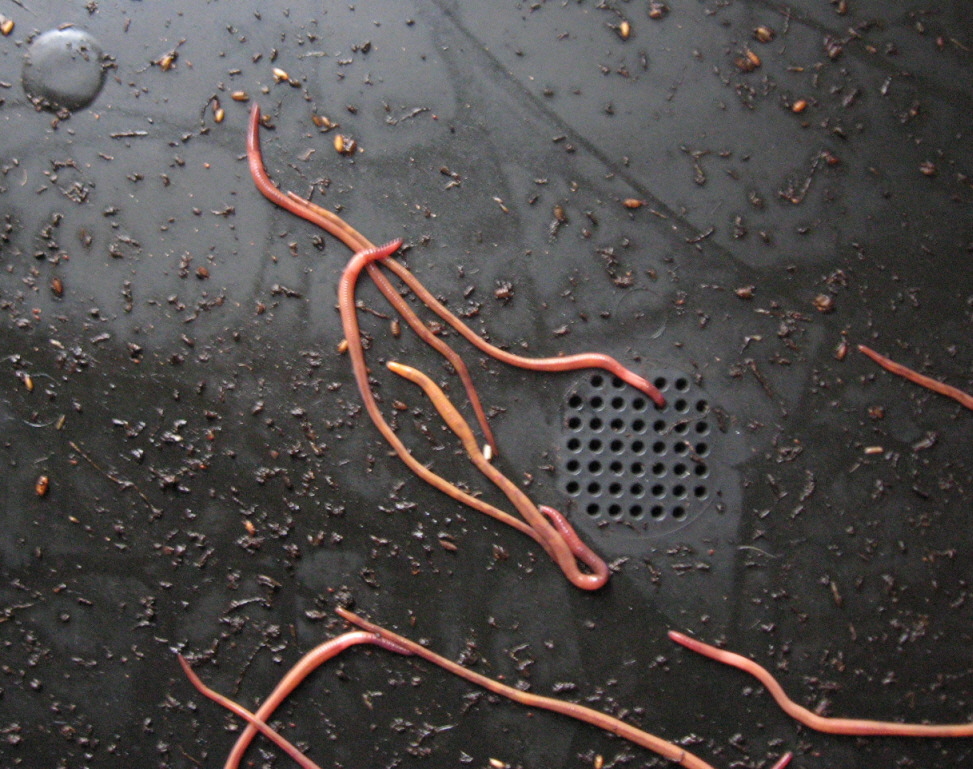 붉은 지렁이 ''Eisenia fetida''와 같은 부식질 섭취자 (쓰레기를 먹는 자)인 퇴비화 지렁이는 표면 생활자이며, 공생 관련 미생물과 함께 음식물 쓰레기를 분해하는 데 이상적인 매개체이다. ''Lumbricus terrestris''와 같은 일반적인 지렁이는 땅속 깊이 사는 종이므로 밀폐된 시스템에 사용하기에 적합하지 않다.[24] 기여하는 다른 토양 종으로는 곤충, 다른 지렁이 및 곰팡이가 있다.[25]