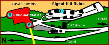 지브롤터 케이블카는 1966년 스위스 케이블카 전문 회사인 폰 롤 홀딩에 의해 건설되었으며, 기저부와 정상역은 건축가 브라이언 헬리웰이 설계했고, 시그널 힐 배터리 꼭대기에 위치해 있다. 이 배터리는 신호소 옆에 위치해 있었으며, 제2차 세계 대전 동안 3인치 30-cwt 대공포 2문과 40mm 보포스 포 1문이 장착되어 있었다.[3] 예전 케이블 역의 잔해는 여전히 남아 있는데, 이 역은 밧줄을 사용하여 물자(또는 용감한 사람)를 시그널 힐 정상까지 운반하는 데 사용되었다.[2] 이전 군사 건물들의 잔해 외에도 역 아래로 동서 방향으로 뻗어 있는 짧은 터널도 있다.[3]