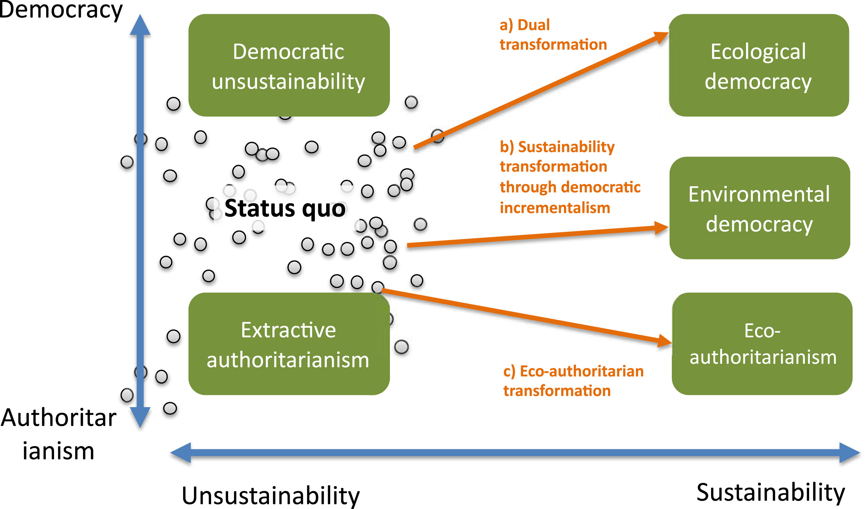 변환에는 네 가지 중첩 프로세스가 있을 수 있으며, 각각 다른 정치적 역학을 가진다. 기술, 시장, 정부 또는 시민이 이러한 프로세스를 주도할 수 있다.[221]