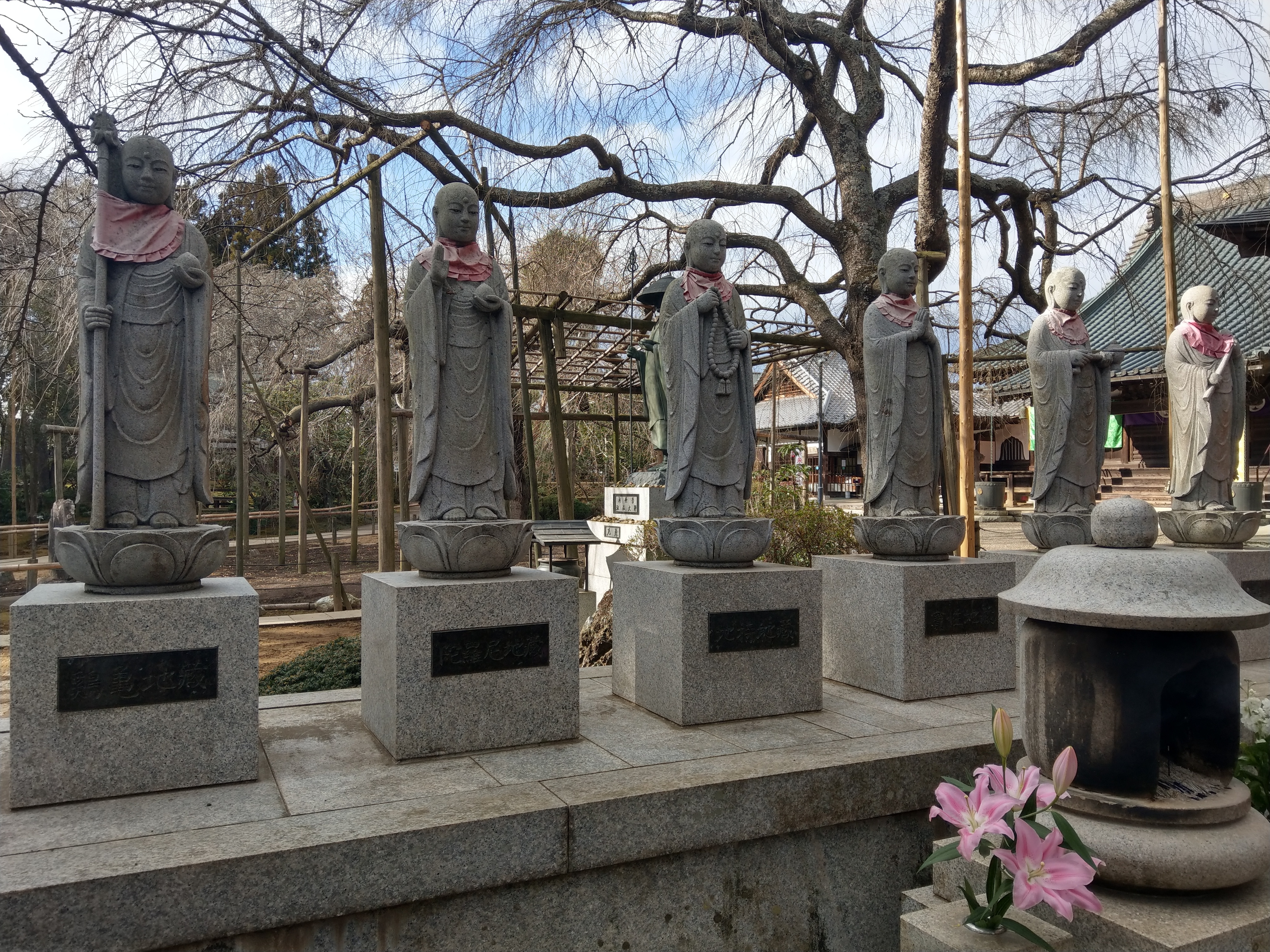 이러한 묘사의 일본식 변형은 여섯 지장보살(Six Kṣitigarbhas)로, 보살의 여섯 가지 완전한 조각상 형태이다. 이러한 예는 중손사 사원의 '금당(金堂, Hall of Gold)'인 금당(Konjikidō)에서 찾아볼 수 있다.
