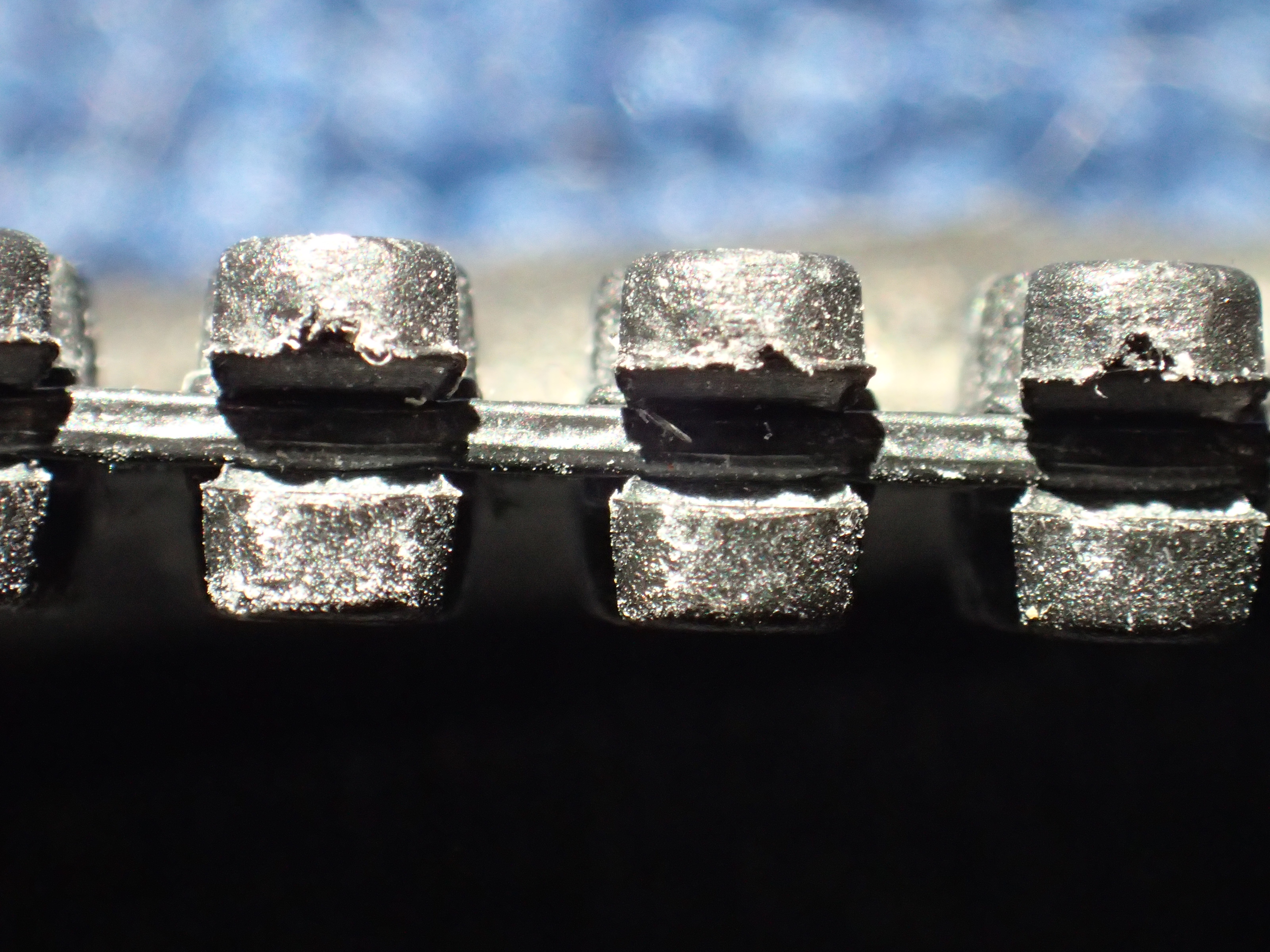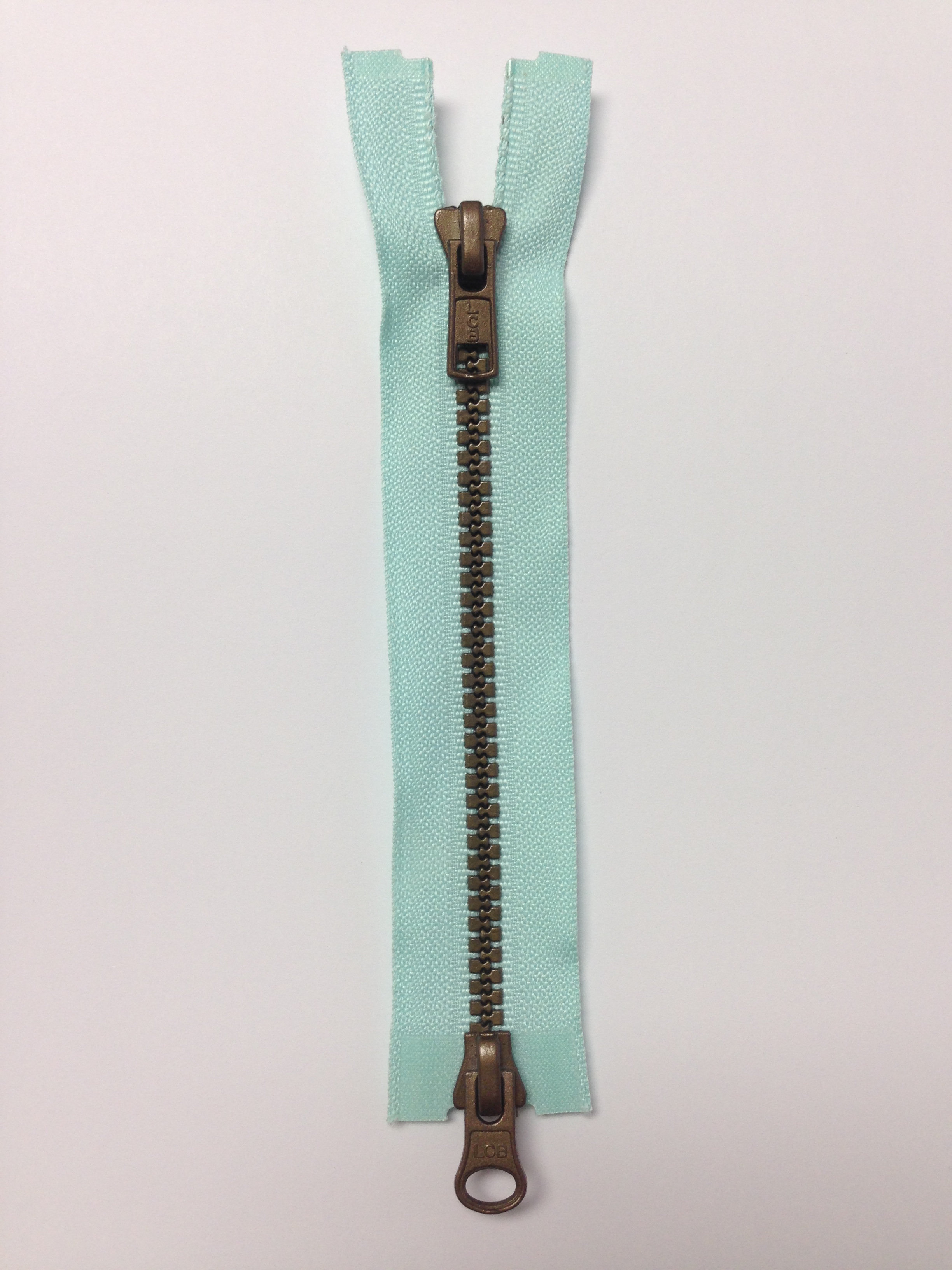 - '''금속 지퍼'''는 청바지와 필통 등에서 주로 볼 수 있는 고전적인 지퍼 유형이다. 이빨은 코일이 아닌 금속의 개별 조각으로, 모양을 내어 지퍼 테이프에 일정한 간격으로 고정한다. 황동, 알루미늄, 니켈로 만들어진다. 기본적으로 평평한 와이어로 만들어진다. 특수한 유형의 금속 지퍼는 미리 성형된 와이어(주로 황동)로 만들어지지만, 때로는 다른 금속으로도 만들어진다. 전 세계적으로 이 기술을 가진 회사는 몇 안 된다. 이러한 유형의 미리 성형된 금속 지퍼는 높은 강도가 필요하고 지퍼가 거친 세탁을 견뎌야 하는 고급 청바지, 작업복 등에 주로 사용된다.