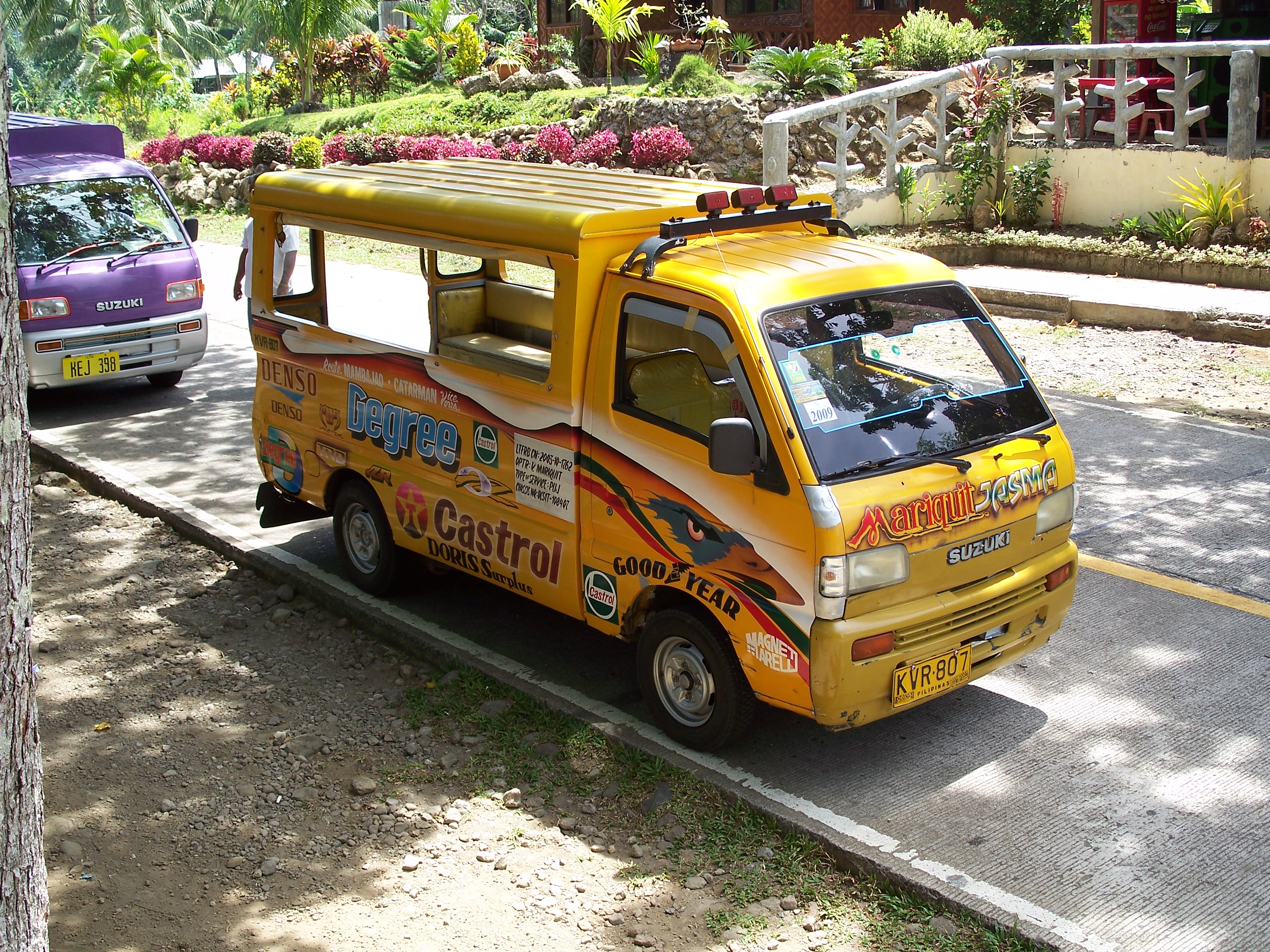 지프니는 필리핀에서 대중적인 교통 수단으로, 제2차 세계 대전 이후 미군이 남기고 간 지프를 개조하여 만들어졌다. 지프니는 다양한 디자인과 화려한 장식으로 개성을 나타내며, 승객들은 정해진 노선에서 자유롭게 타고 내릴 수 있다. 그러나 지프니는 노후화된 차량, 배기가스 배출, 난폭 운전 등의 문제로 인해 교통 체증과 대기 오염의 원인이 되기도 한다. 필리핀 정부는 이러한 문제 해결을 위해 지프니 현대화 프로그램을 추진하고 있으며, 전기 지프니 도입도 시도하고 있다.