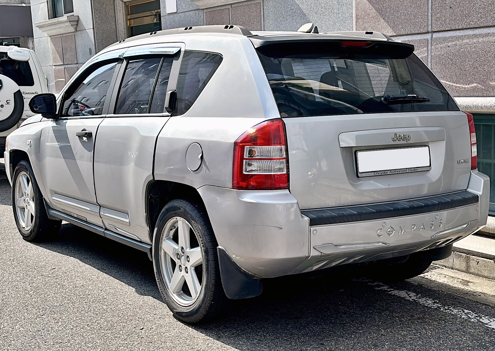 Jeep Compass영어는 크라이슬러 MK 플랫폼을 기반으로 제작되었으며, 지프 패트리어트, 닷지 캘리버와 플랫폼을 공유한다.[7] 대한민국에는 2007년부터 2.4L DOHC 가솔린 모델이 수입되었다.2011년에는 페이스리프트를 거쳐 앞모습이 4세대 그랜드 체로키와 유사한 모습으로 변경되었다. 변속기는 CVT에서 현대파워텍의 6단 자동변속기로 바뀌었으며, 오스트레일리아 및 유럽 판매 사양에 적용되던 폭스바겐제 2.0L 커먼레일 디젤 엔진은 메르세데스-벤츠제 2.2L 커먼레일 디젤 엔진으로 대체되었다.[8]
