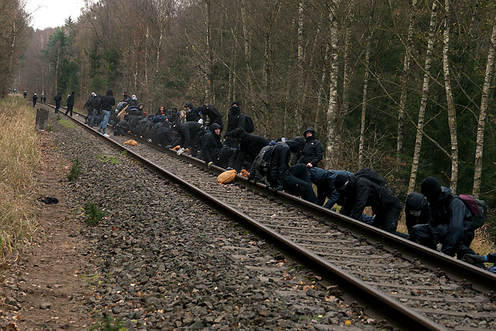 일부 시위대는 신원을 가리기 위해 검은 옷과 얼굴 가리개를 착용하는 블랙 블록을 한다. Ende Gelände 시위대는 같은 흰색 슈트를 입는다.