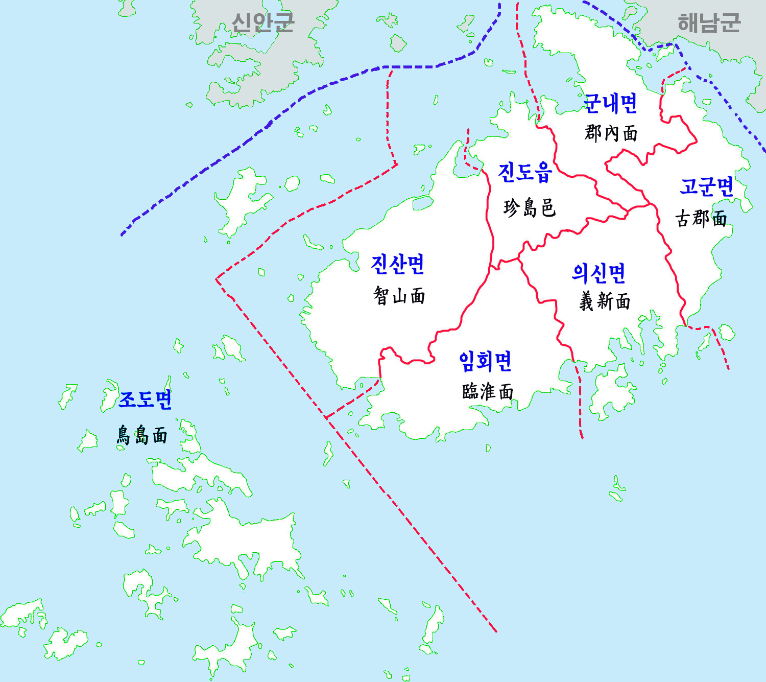 진도읍 | 珍島邑 | 44.32km2 | 10902 | 4,602 | ![]() |