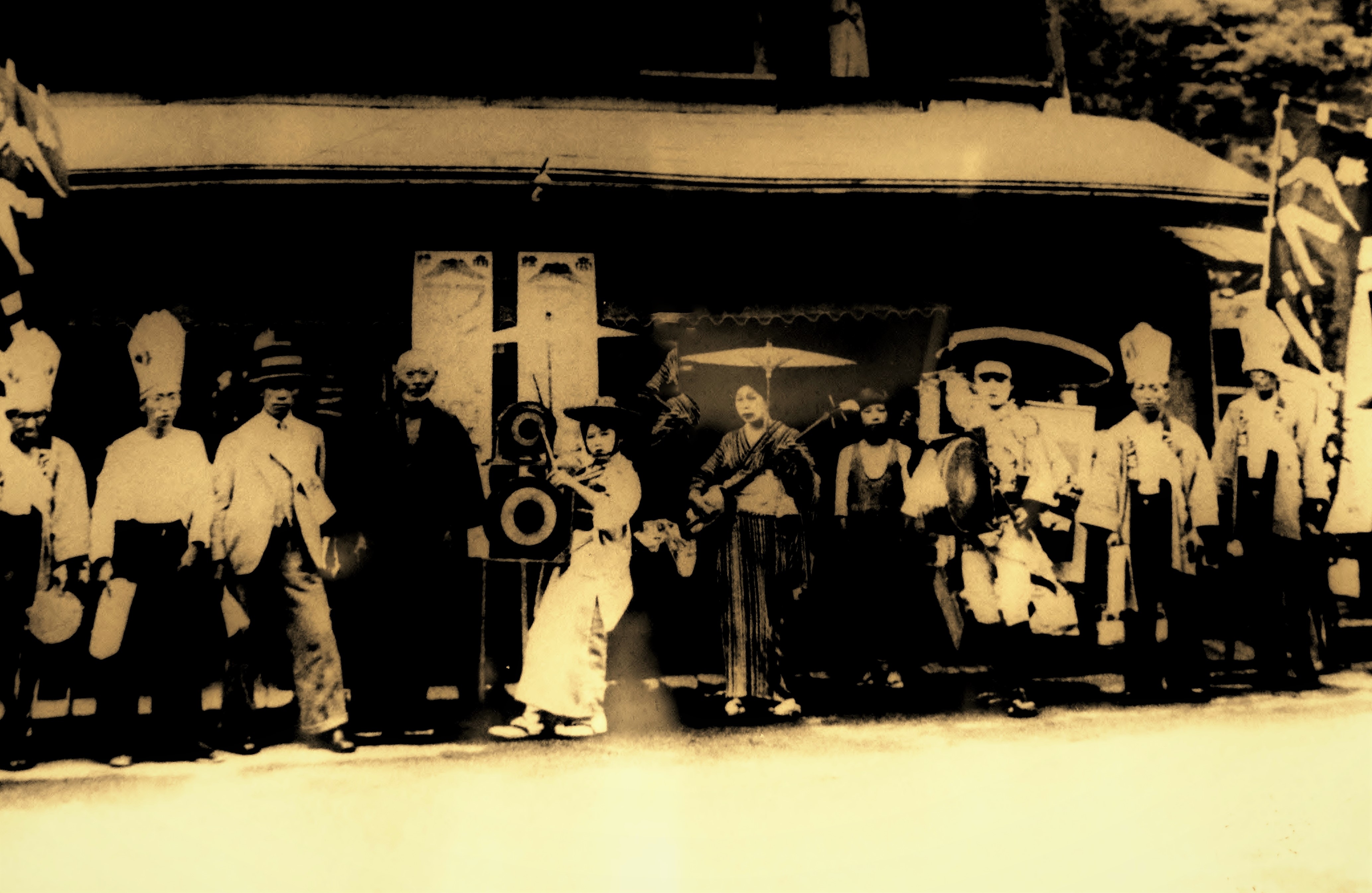 상점 개업 축하에서 진돈야. 1935년경. 현 야마나시현쓰루시.