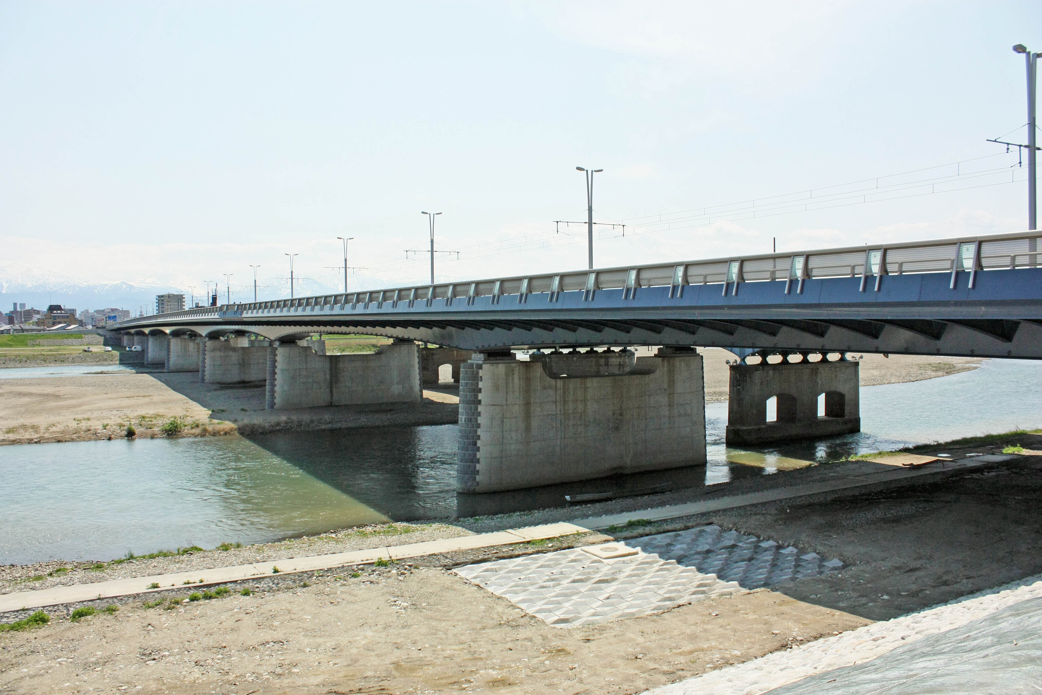 과거 진즈강은 도야마시를 따라 구불구불 흘렀으나, 홍수를 막기 위해 새로운 수로가 건설되었다.