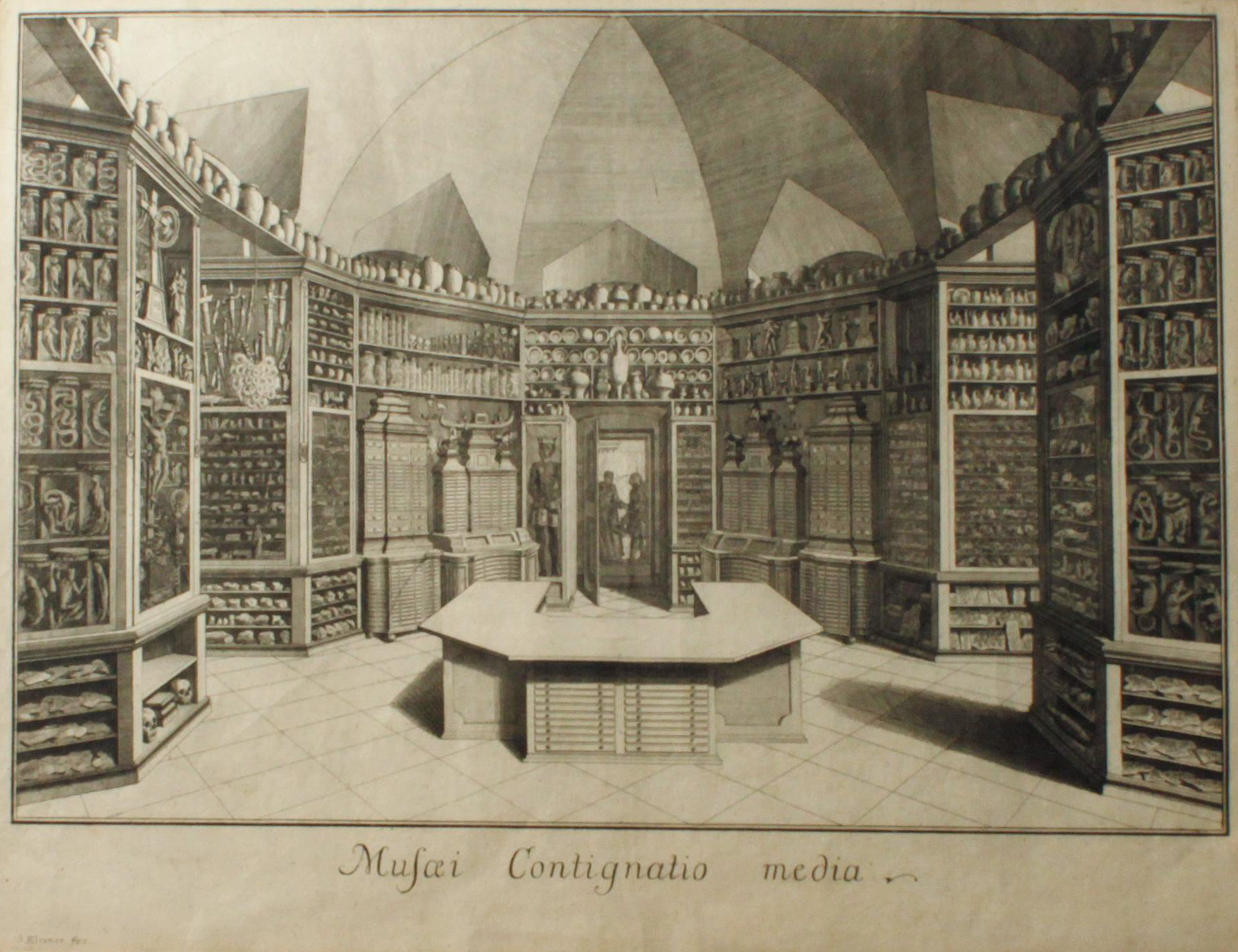17세기 호기심의 방에는 보존된 동물, 뿔, 상아, 해골, 광물뿐만 아니라 조각품, 시계 자동인형, 민족지학적 표본 등 다양한 인공물들이 있었다. 종종 사실과 허구가 섞여 신화 속 생물을 포함하기도 했다. 올레 웜의 수집품에는 스키타이 양이라고 생각했던 털이 많은 양치류가 있었지만, 일각고래의 엄니가 유니콘이 아닌 고래에서 나왔다는 것을 밝혀내기도 했다.