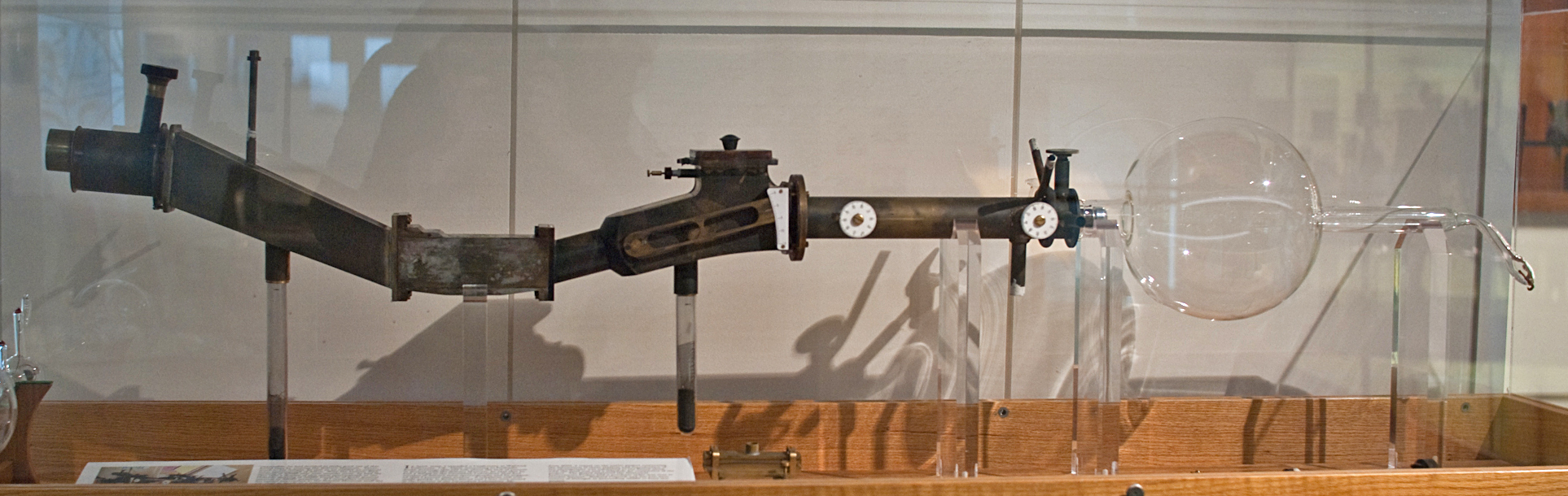 1886년, 외젠 골드슈타인(Eugen Goldstein)은 저압 방전관에서 양극에서 멀어지면서 구멍이 뚫린 음극의 채널을 통과하는 광선을 관찰했는데, 이는 음으로 대전된 음극선과 반대 방향으로 이동하는 것이었다. 골드슈타인은 이러한 양으로 대전된 양극선을 "카날선(canal rays)"이라고 불렀다. 빌헬름 빈(Wilhelm Wien)은 강한 전기장 또는 자기장이 카날선을 편향시킨다는 것을 발견했고, 1899년에 전기장과 자기장을 직각으로 배치하여 전하 대 질량 비율(''Q/m'')에 따라 양의 광선을 분리하는 장치를 만들었다. 빈은 전하 대 질량 비율이 방전관 내 기체의 종류에 따라 달라진다는 것을 발견했다. 영국의 과학자 J. J. 톰슨(J. J. Thomson)은 나중에 압력을 낮춰 질량 분광기를 만드는 빈의 연구를 개선했다.