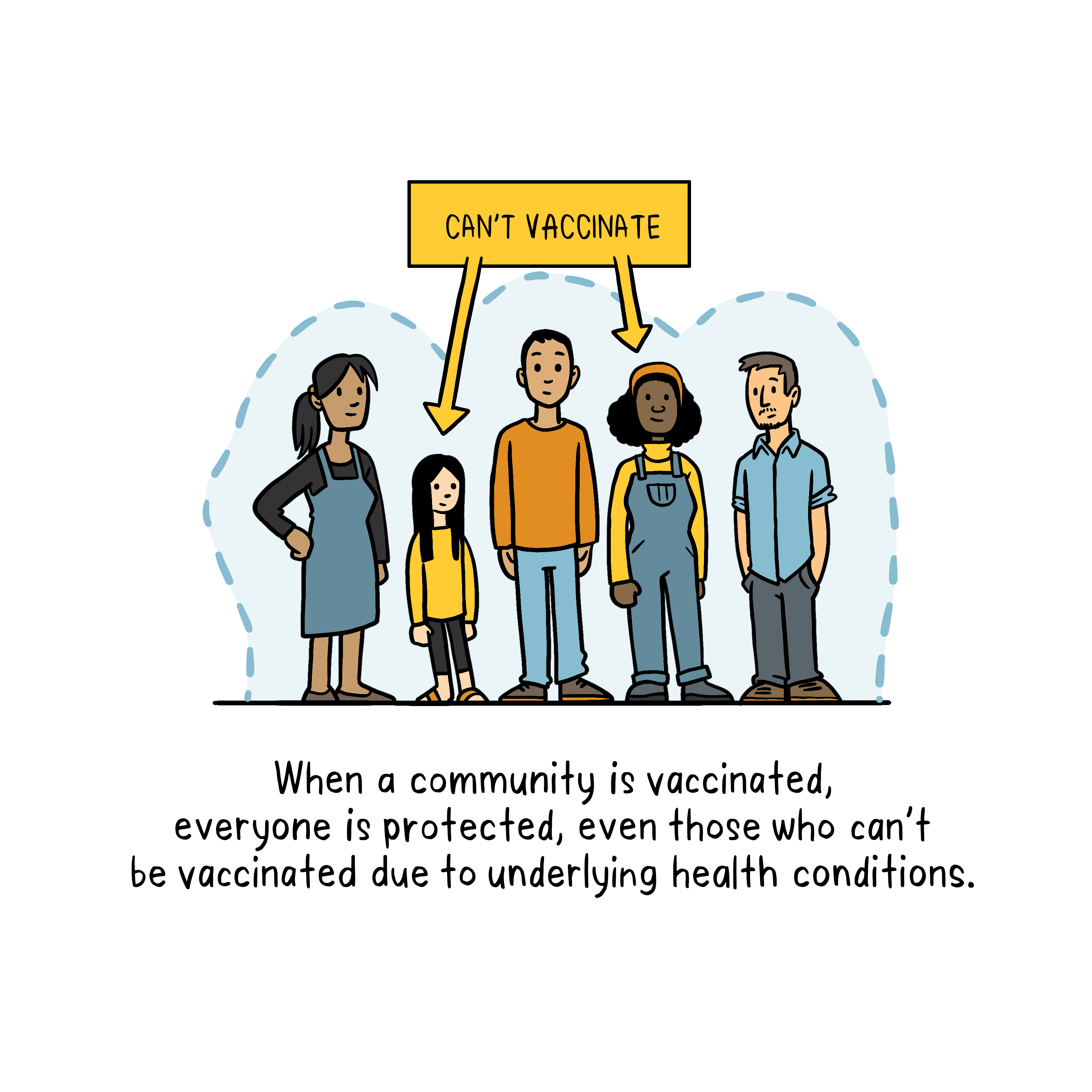 백신 접종을 받은 사람 중 일부는 장기 면역력을 발달시키지 못할 수 있다.[2][13][14] 이러한 집단에 속한 개인은 면역력이 없을 뿐만 아니라 의학적 상태로 인해 감염으로 인한 합병증이 발생할 위험이 더 클 수 있지만, 인구의 충분한 비율이 면역력이 있다면 보호받을 수 있다.[9][10][14][15]