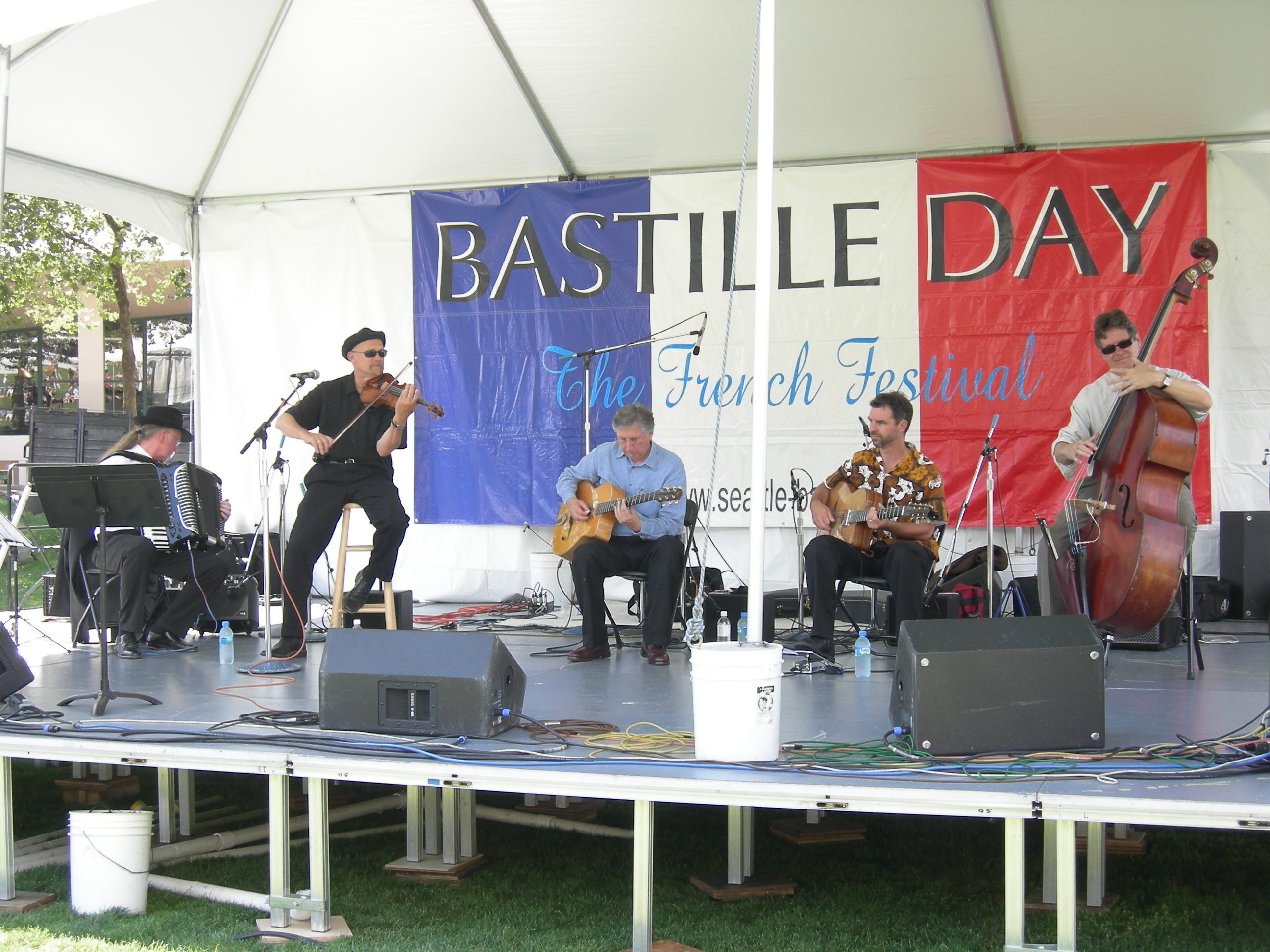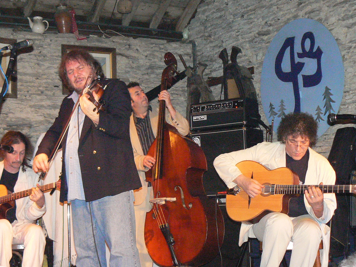 1934년 여름, 장고 라인하르트는 바이올리니스트 스테판 그라펠리를 만났다. 이후 그들은 파리의 호텔 클라리지에서 무도 음악을 연주했다. 마이클 드레그니의 책에 따르면, 그라펠리가 코러스를 연주한 다음 라인하르트가 즉흥 연주를 시작했다고 한다. 때때로 그들은 밴드 리더인 루이 볼라의 더블베이스와 로제 샤푸의 리듬 기타 반주를 받았다. 이것이 라인하르트 밴드의 핵심이었다. 라인하르트의 형 조셉이 리듬 기타에 합류하면서 퀸텟 뒤 핫 클럽 드 프랑스가 되었다.[9]