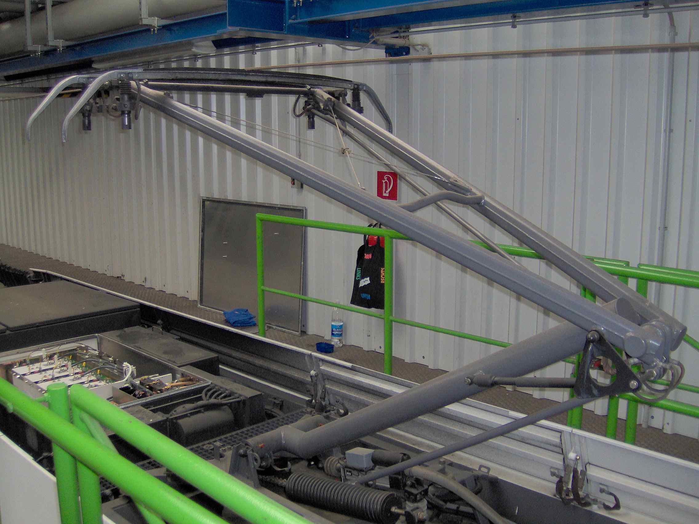 영국에서는 차량의 집전장치 (브렉넬 윌리스(Brecknell Willis) 및 스톤 파이벌리(Stone Faiveley))가 공기압으로 상승하며, 흑연 접촉 "카본"은 집전장치 헤드에 공기 통로를 만들어 흑연 스트립이 손실될 경우 공기를 방출하여 자동 강하 장치를 작동시켜 집전장치를 내리고 손상을 방지한다.