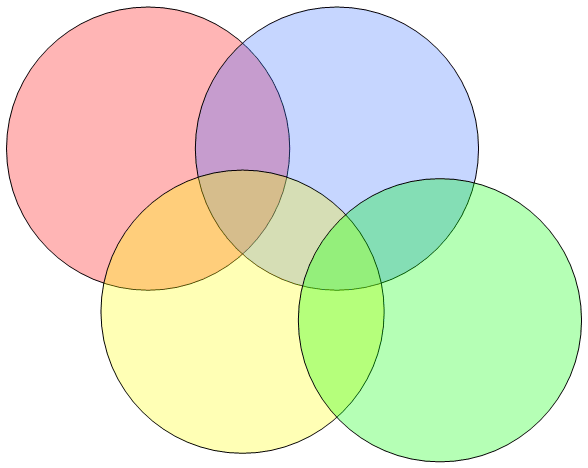 반면에, 벤 다이어그램은 n개의 루프가 평면을 개의 구역으로 나누는 n개 집합의 그래픽 표현이며, 이 구역들은 n개의 집합 중 일부(전부 또는 아무것도 선택하지 않을 수도 있음)를 선택하는 각 방법에 대해, 선택된 모든 집합에 속하고 다른 집합에는 속하지 않는 요소들을 위한 구역이 존재한다. 예를 들어, 집합이 A, B, C라면, A와 C 안에 있고 B 밖에 있는 요소들을 위한 구역이 있어야 한다(그러한 요소가 존재하지 않더라도).