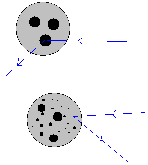강입자가 무한대의 운동량을 갖는 기준틀을 사용하면, 쪽입자의 움직임은 상대론적 시간 지연에 의해 늦어지고, 강입자의 전하 분포는 로렌츠 수축을 받는다. 따라서 입사 입자는 "순간적이고 비간섭적으로" 산란된다.[27]
